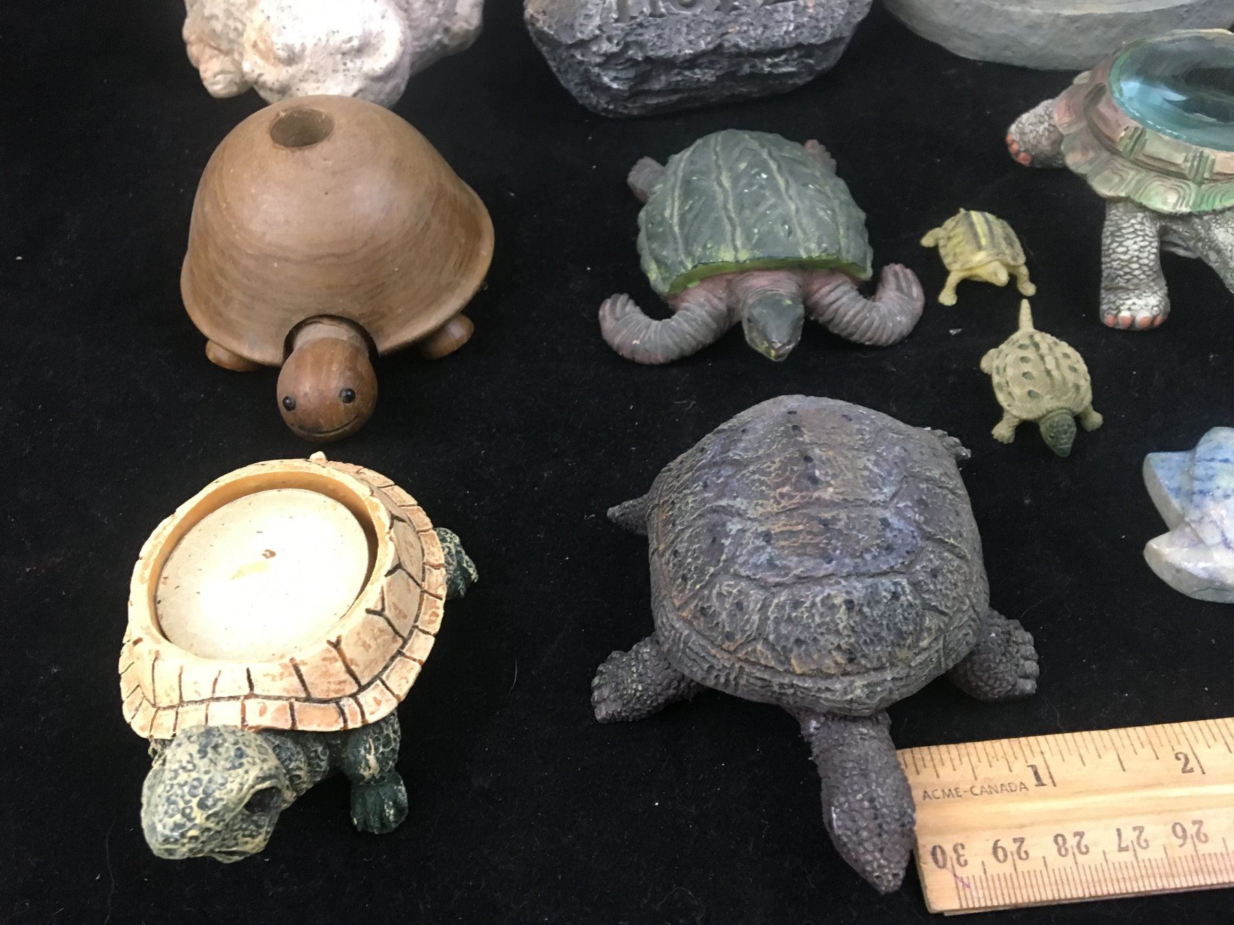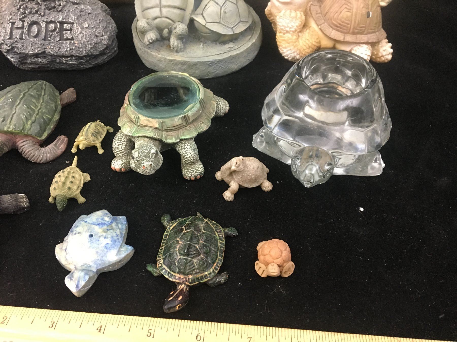 LARGE LOT OF VARIOUS TURTLE FIGURINES ETC…