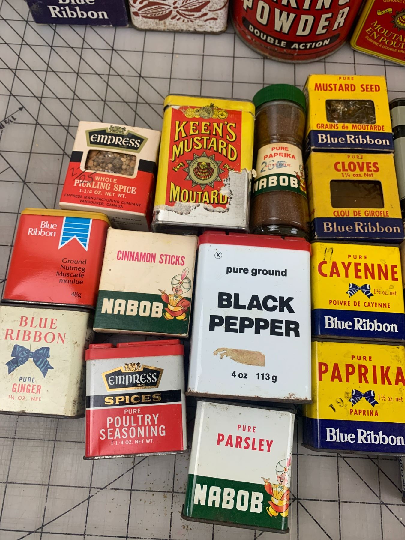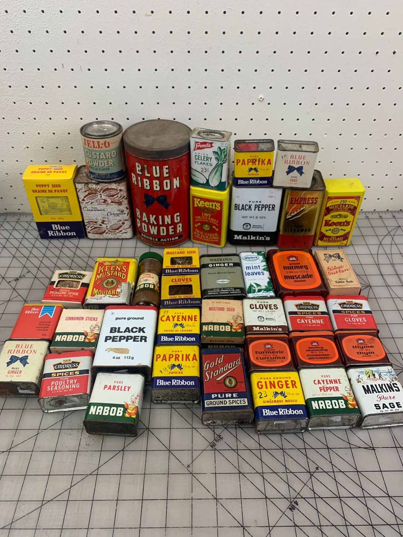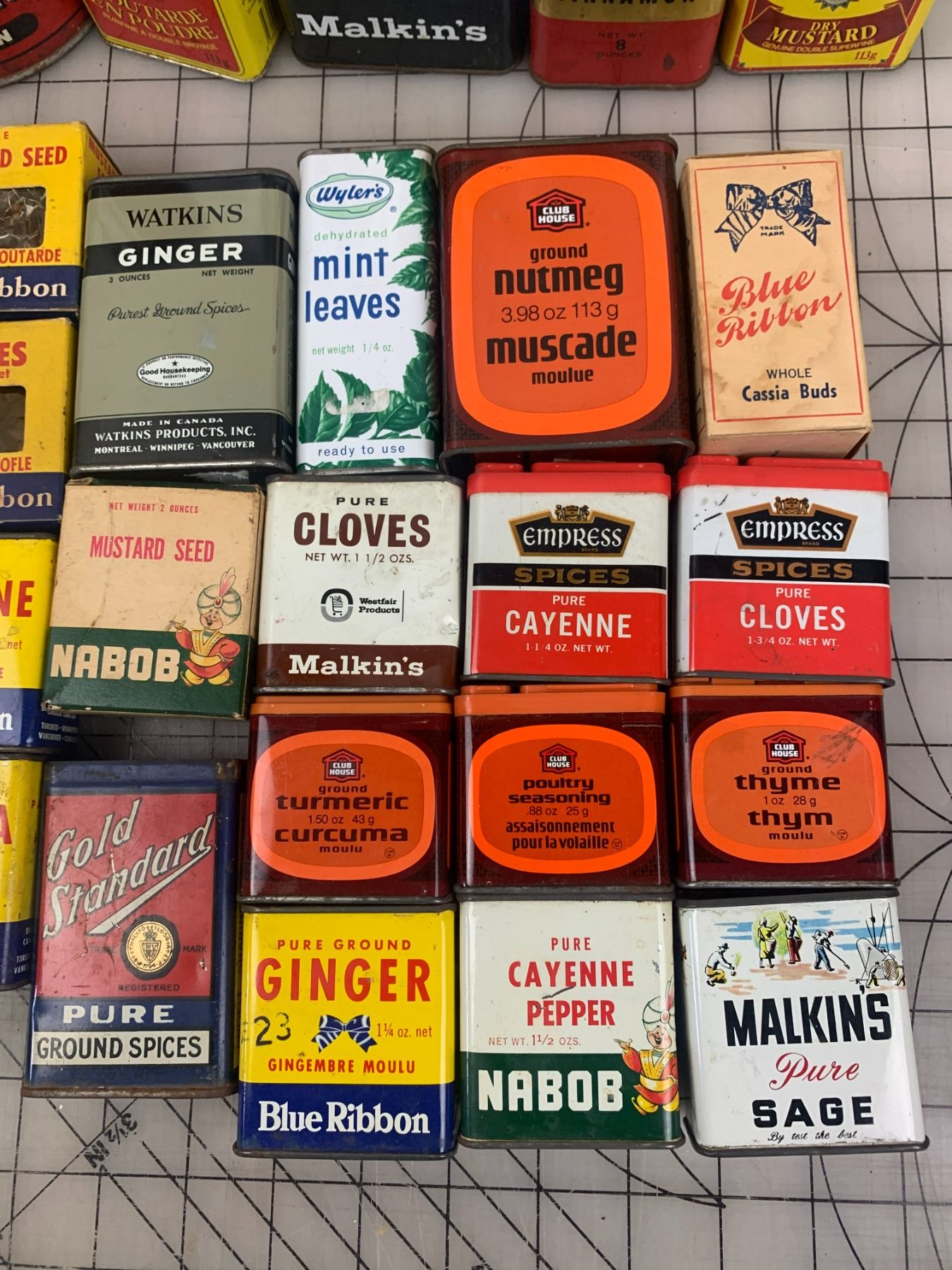 LARGE LOT OF VINTAGE KITCHEN SPICE TINS ETC