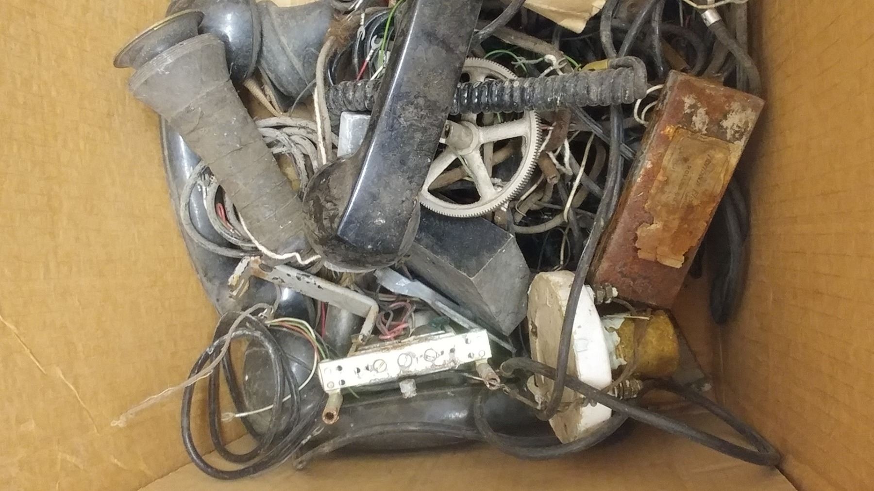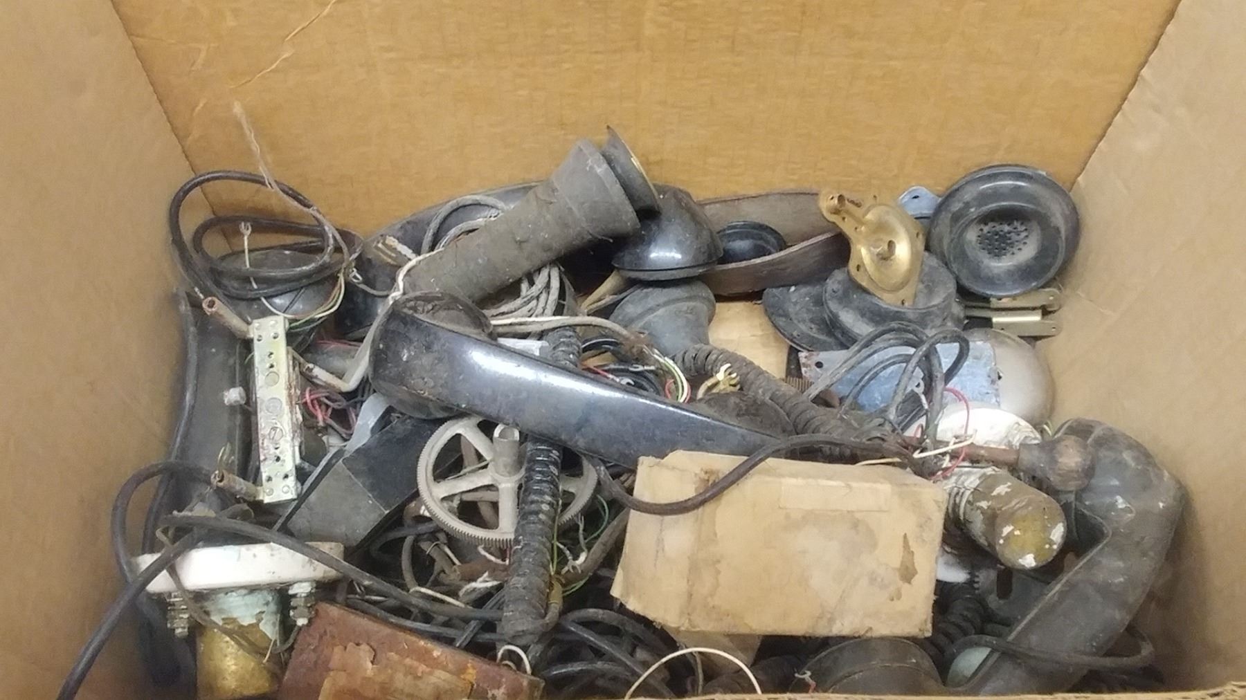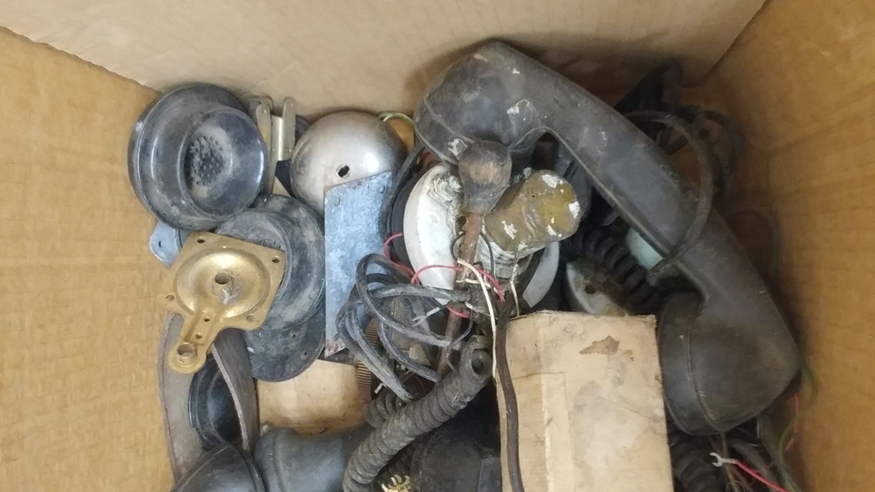 LARGE LOT OF VINTAGE PHONE PARTS, PIECES, RECEIVERS