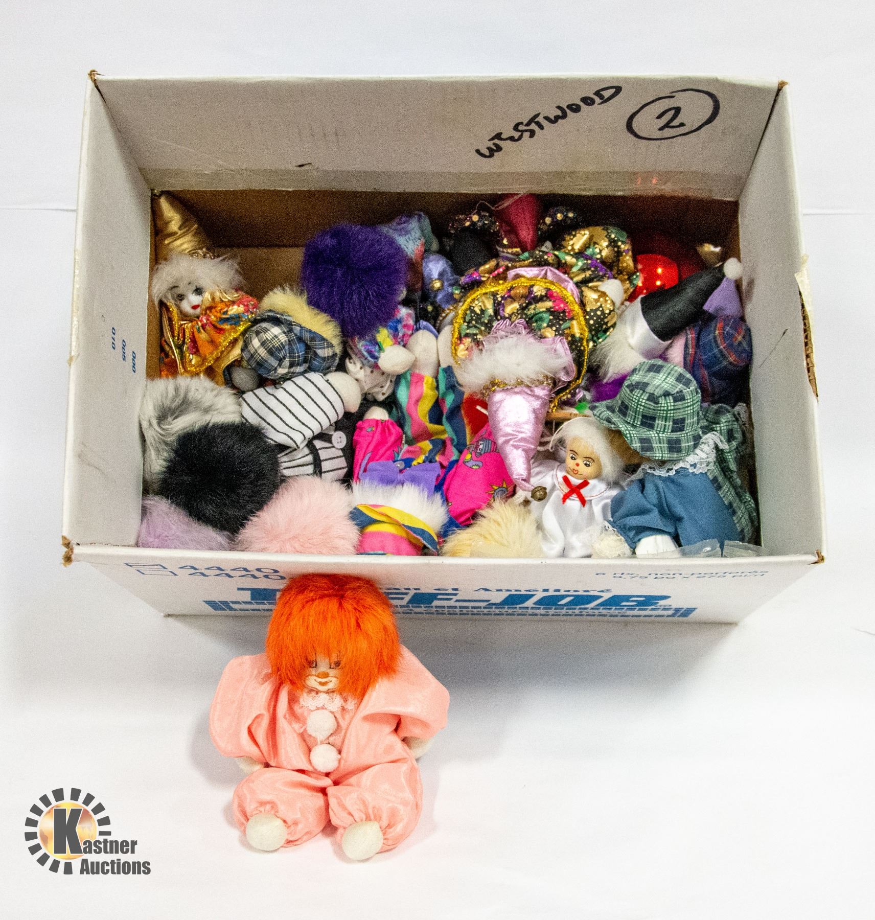 CLOWN DOLLS AND VARIOUS OTHER CLOWN DOLLS **ALL ITEMS MUST BE REMOVED BY 5PM SATURDAY, APRIL 8TH 2023. ALL REMAINING ITEMS WILL BE SUBJECT TO A $6.00 PER DAY STORAGE CHARGE. ANY ITEMS REMAINING AFTER MONDAY, APRIL 23RD, 2023 WILL BE CONSIDERED FORFEITED. NO REFUNDS WILL BE ISSUED FOR FORFEITED ITEMS. TO SCHEDULE A PICK UP APPOINTMENT CLICK HERE
