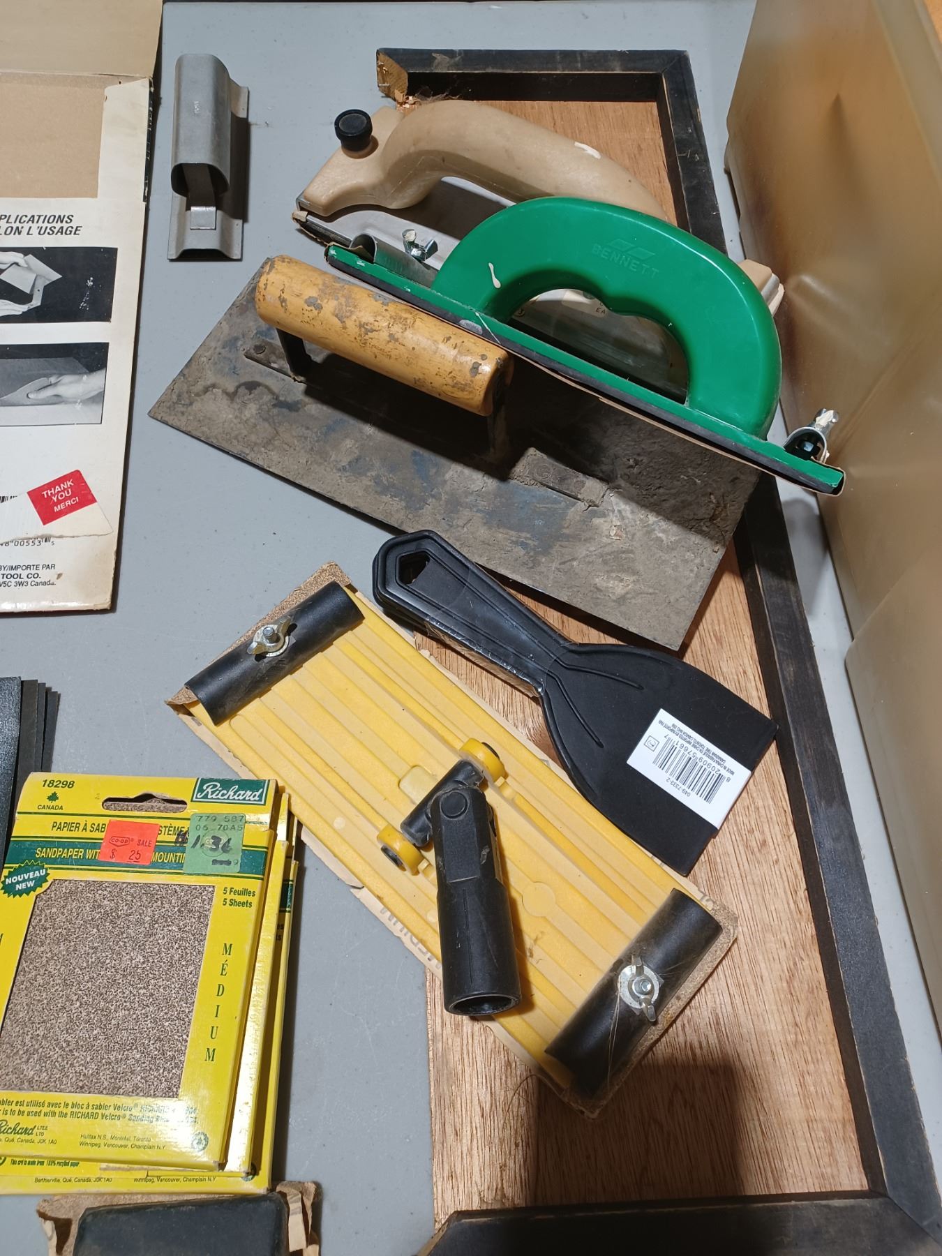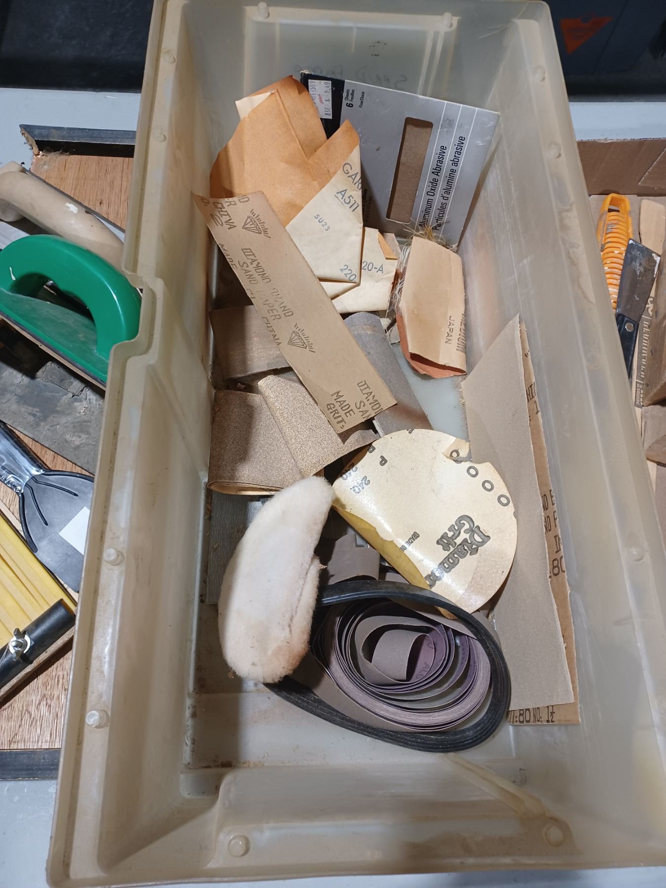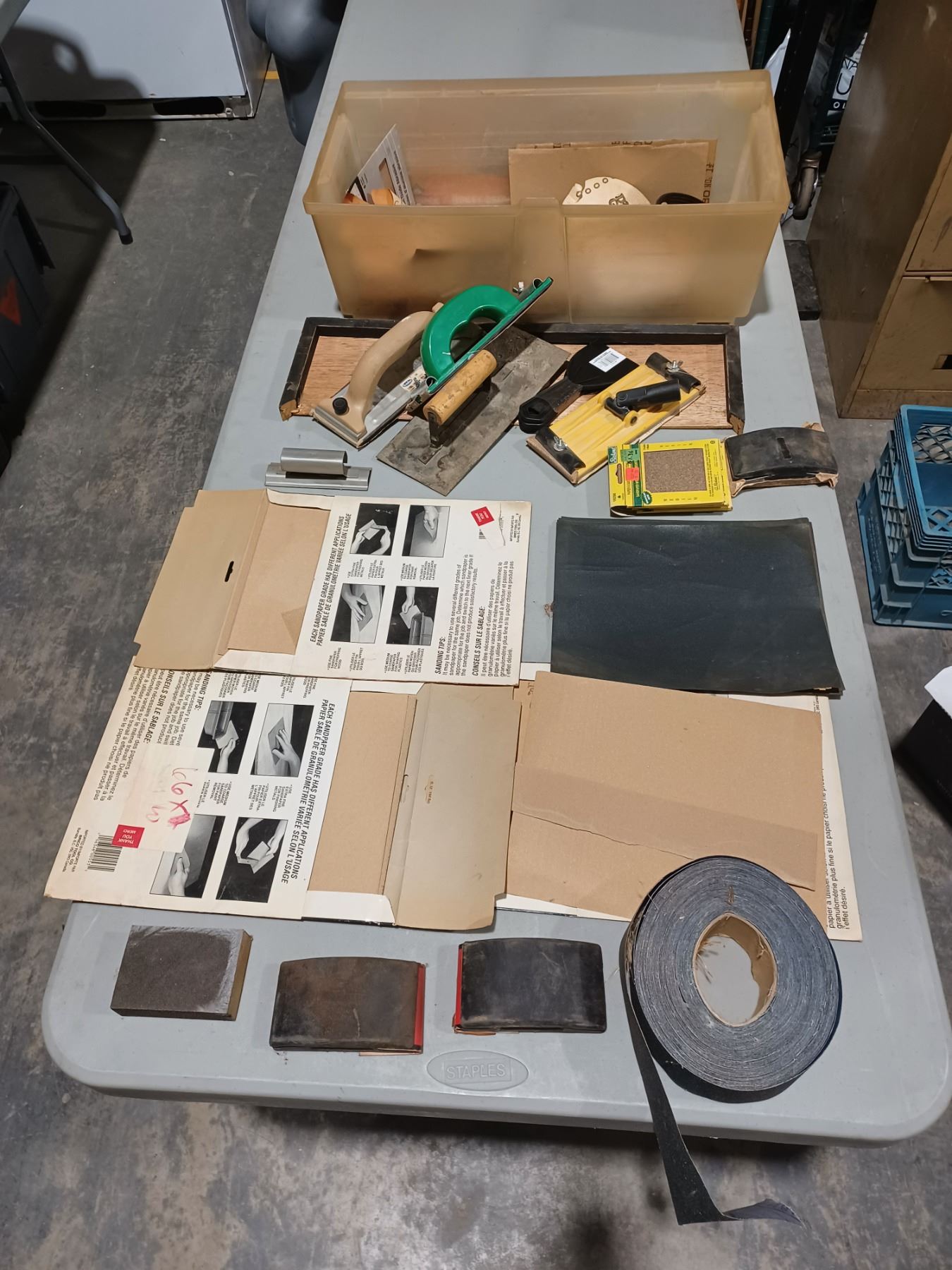 LARGE LOT PUTTY, KNIVES, SANDING BLOCKS AND SAND APER