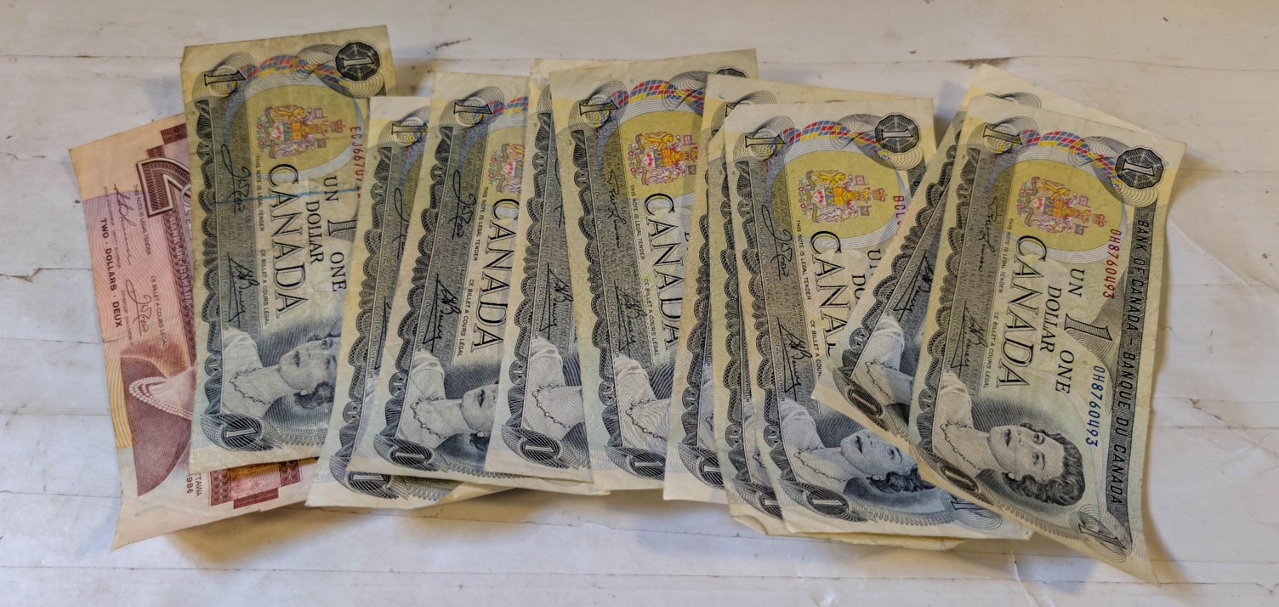 LARGE LOT VINTAGE CANADA $1 $2 BILLS