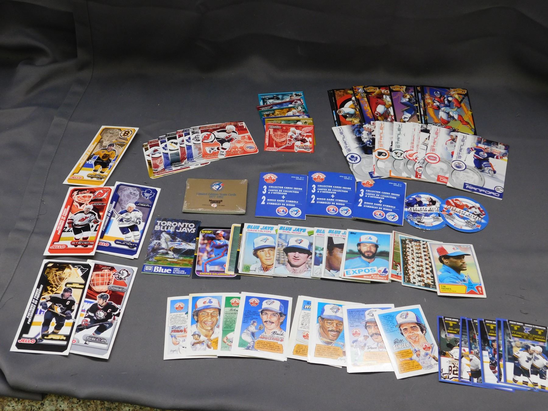 Kraft Issue Complete sets for: Face-off Rivals-6, Overtime Winners-6, Whiz Kidz-8, Partners of Power-12, Great 90s Stanley Cup Moments-15, NHL Global Superheroes-12. All 59 cards Mint glossy finish. Also: Expos and Blue Jays Lot, Jays 1977-92 sealed Team Cards Set, 12 Nabisco 1992, Staub, Lee,