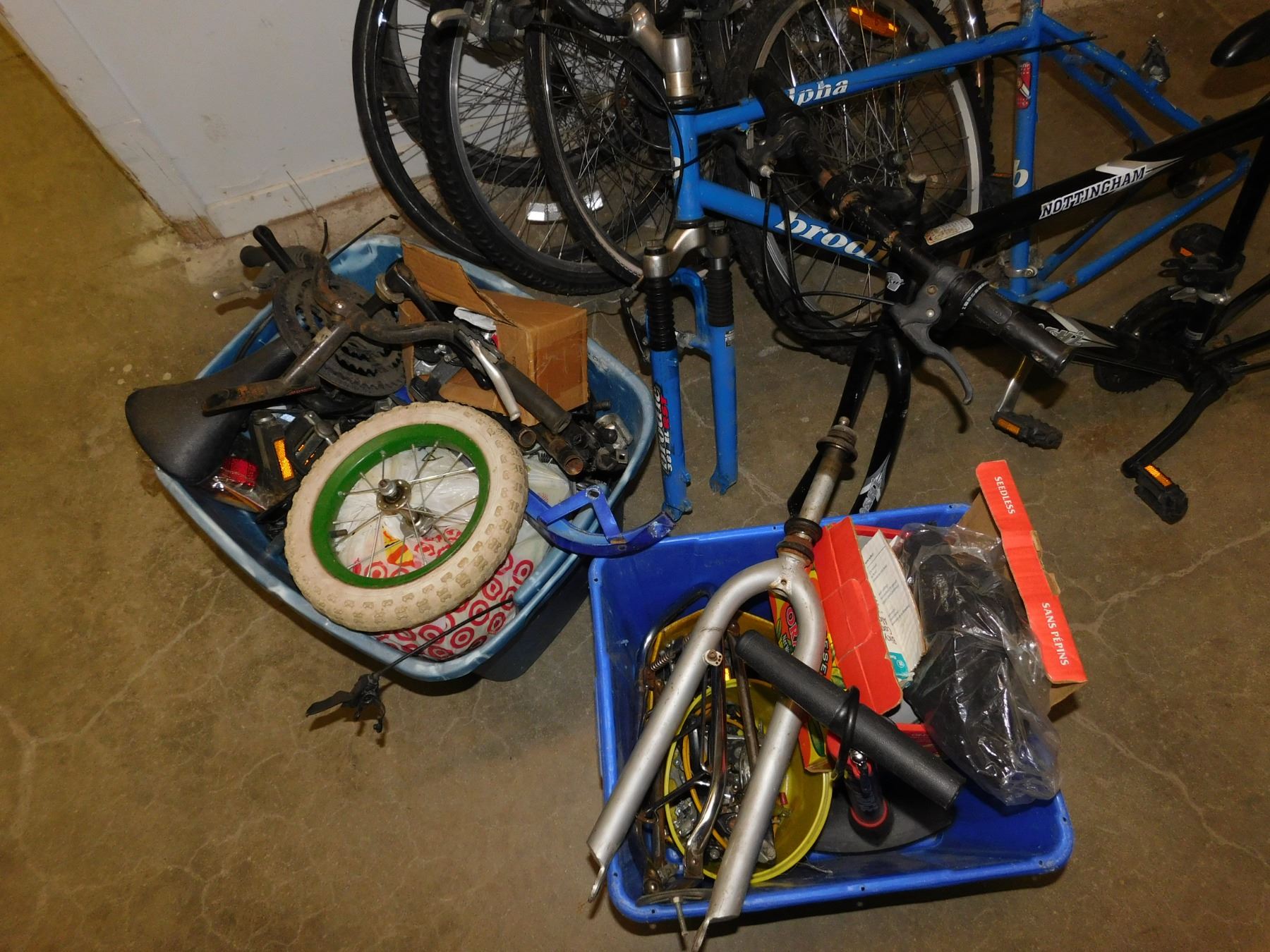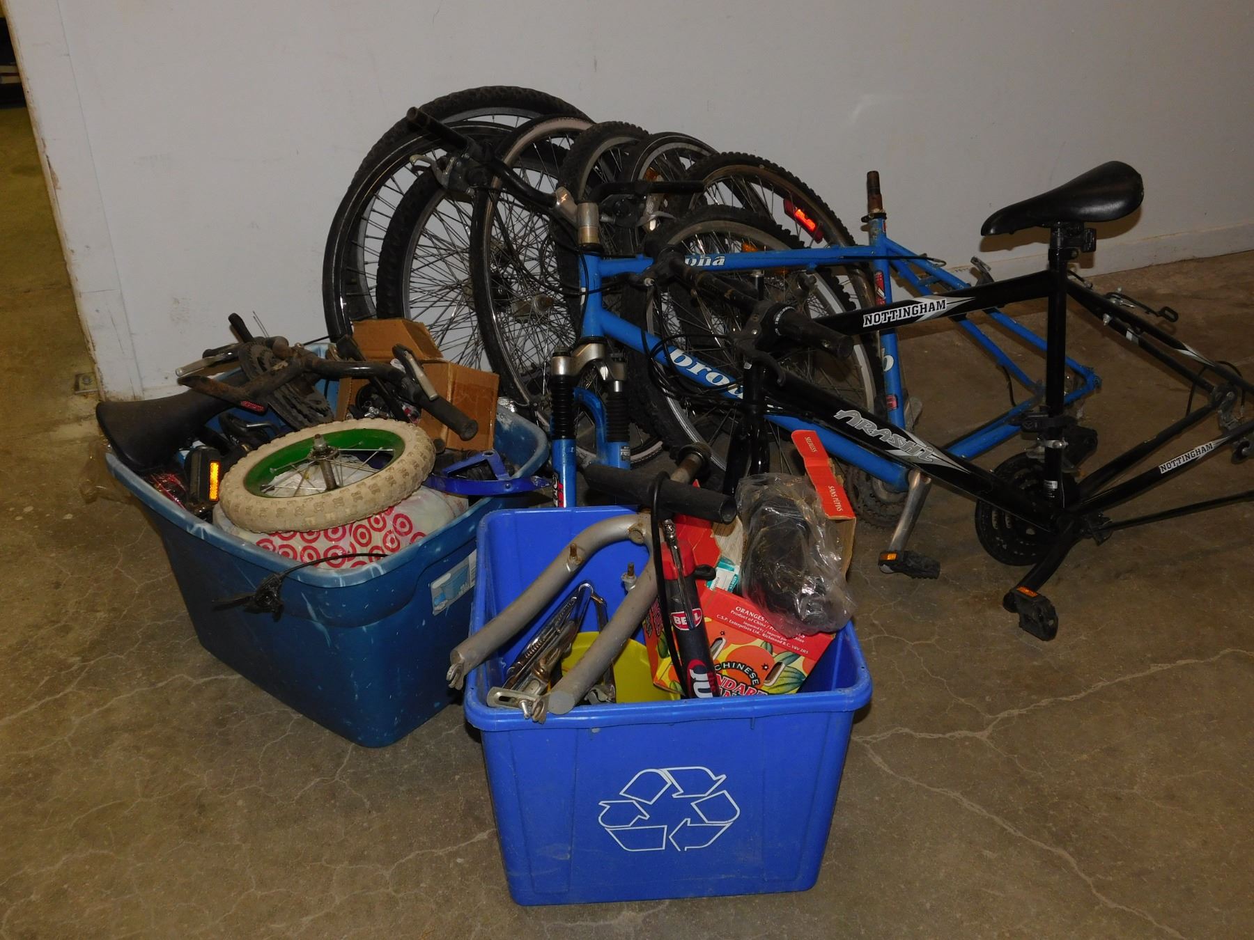 LARGE Load of Bicycle Bike Parts incl 2 Frames, Wheels, 2 Bins FULL of Brakes, Gears, Etc