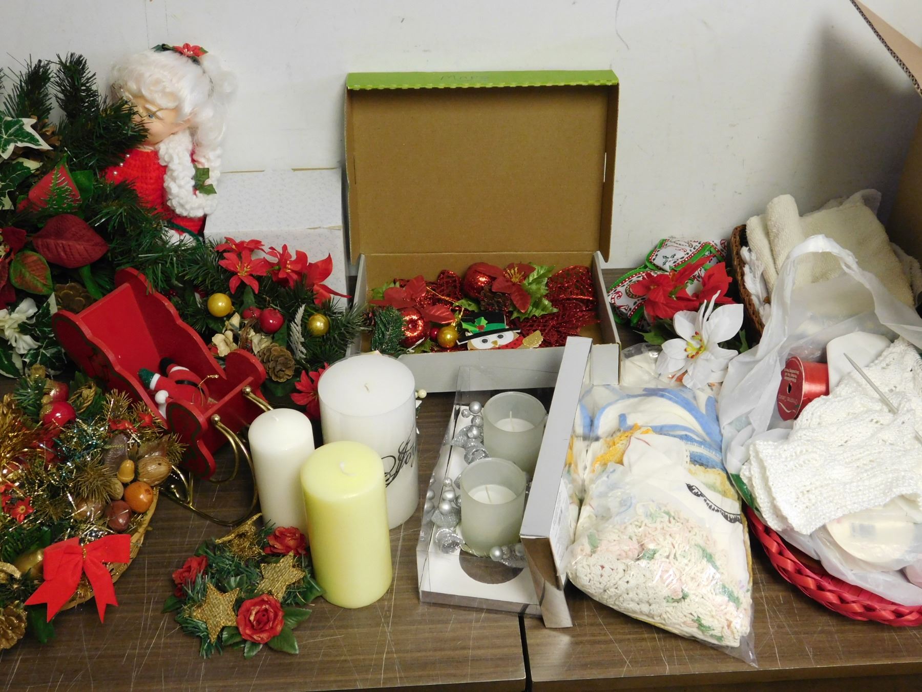 LARGE Lot of Assorted Christmas Decorations, Fabrics, Doilies, Table Mats,