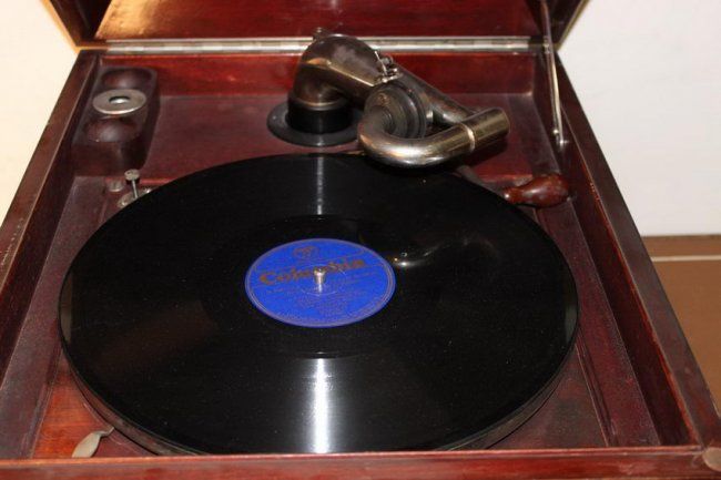 LARGE MAHOGANY TABLE TOP ROLLER BY VICTOR TALKING MACHINE 16.5 X 20 X 14