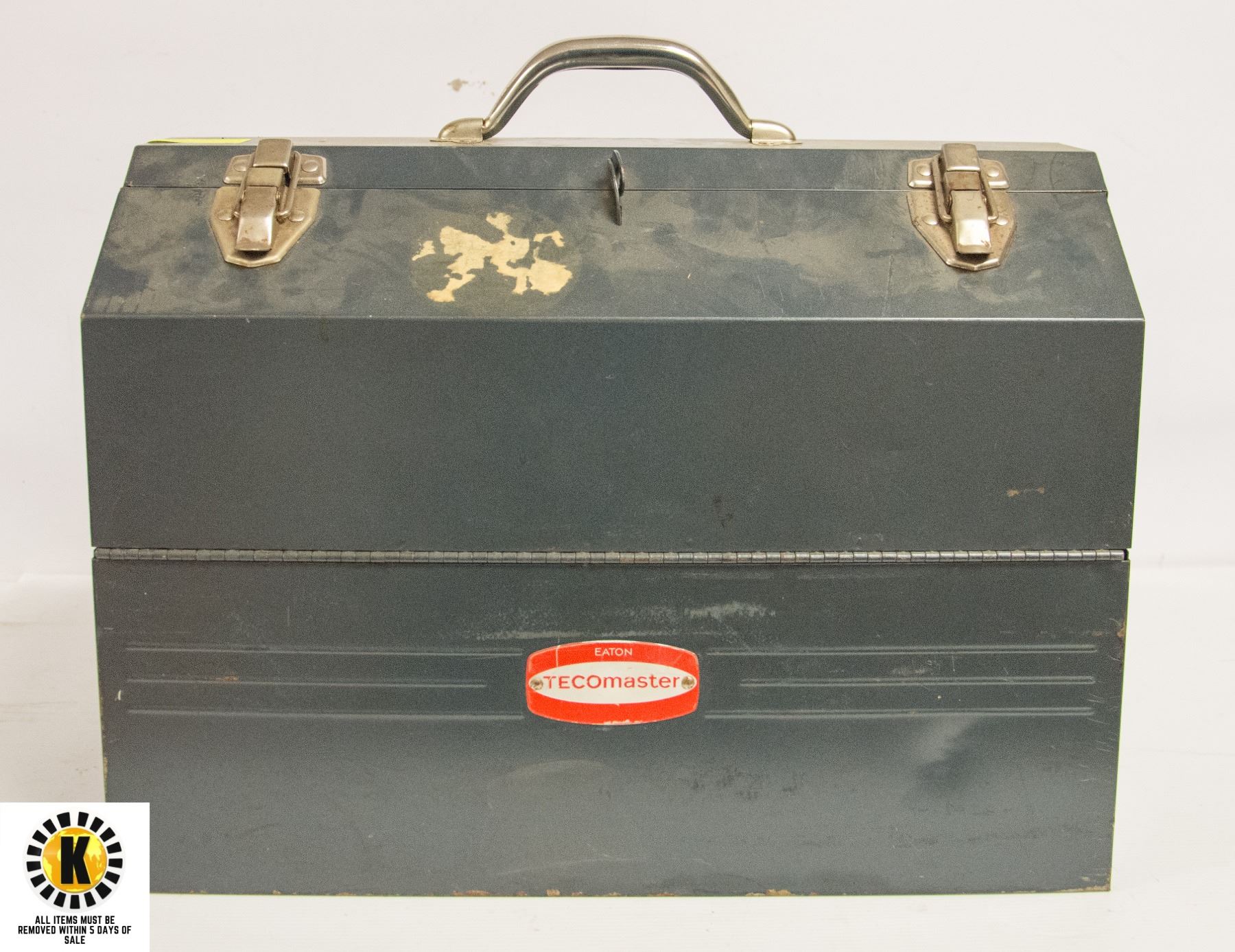 LARGE METAL TOOL / FISHING BOX WITH CONTENT