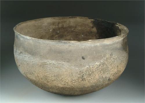 LARGE MISSISSIPPIAN TYPE POT. Mississippian period, Circa 1200-1500AD style. Cord marked body, smooth rim and neck. SIZE: 16in. dia x 9-1/4in.. CONDITION: Shows minor stress cracks, repair on one section of the rim. Several chips missing from rim. Generally good. 9-25984-69 The Tennessee Collection of Prehistoric Indian Artifacts from the Allen Graves Estate. SPECIAL NOTE: We do not regularly sell Prehistoric Indian stone artifacts and therefore have very little experience and no expertise in this area. All of the following lots have come from the Collection of the Late Allen Graves of Tennessee. The collection was inherited some years back by his daughter, who now lives in Maine. This collection was consigned to us directly from her. We employed someone to generally identify styles and types, but as stated above, due to our lack of expertise in this field, we can not guarantee the age or origin of the following pieces. We are relying on you, the buyer, to determine to your satisfaction the origin and age of each item in the collection.