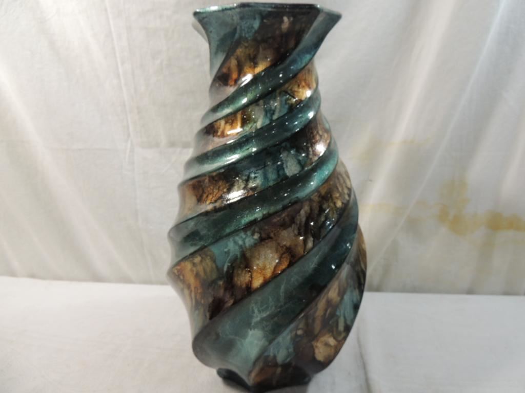 SWIRL DESIGN, BROWN & TEAL VASE, DECORATIVE VASE, MODERN VASE, TALL VASE, HOME DECOR AS SHOWN SEE PHOTO FOR MORE DETAILS.