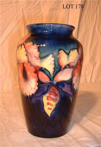 TALL BALUSTER SHAPE MOORCROFT VASE IN THE "ORCHIDS" PATTERN, MARK C. 1945, 8 1/4" x 5", WEIGHING 2.0 LBS.