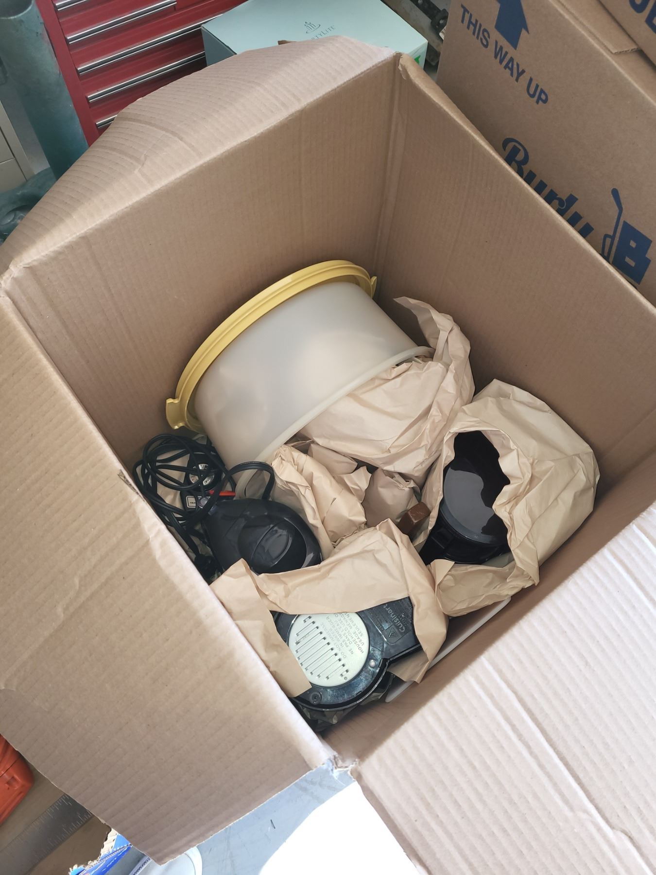 LARGE MOVING BOX 1/2 FULL OF KITCHEN APPLIANCES+