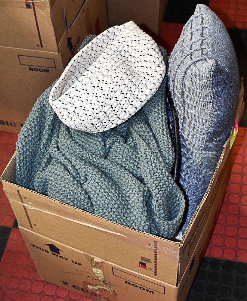 LARGE MOVING BOX OF SHOW HOME DECOR & BEDDING