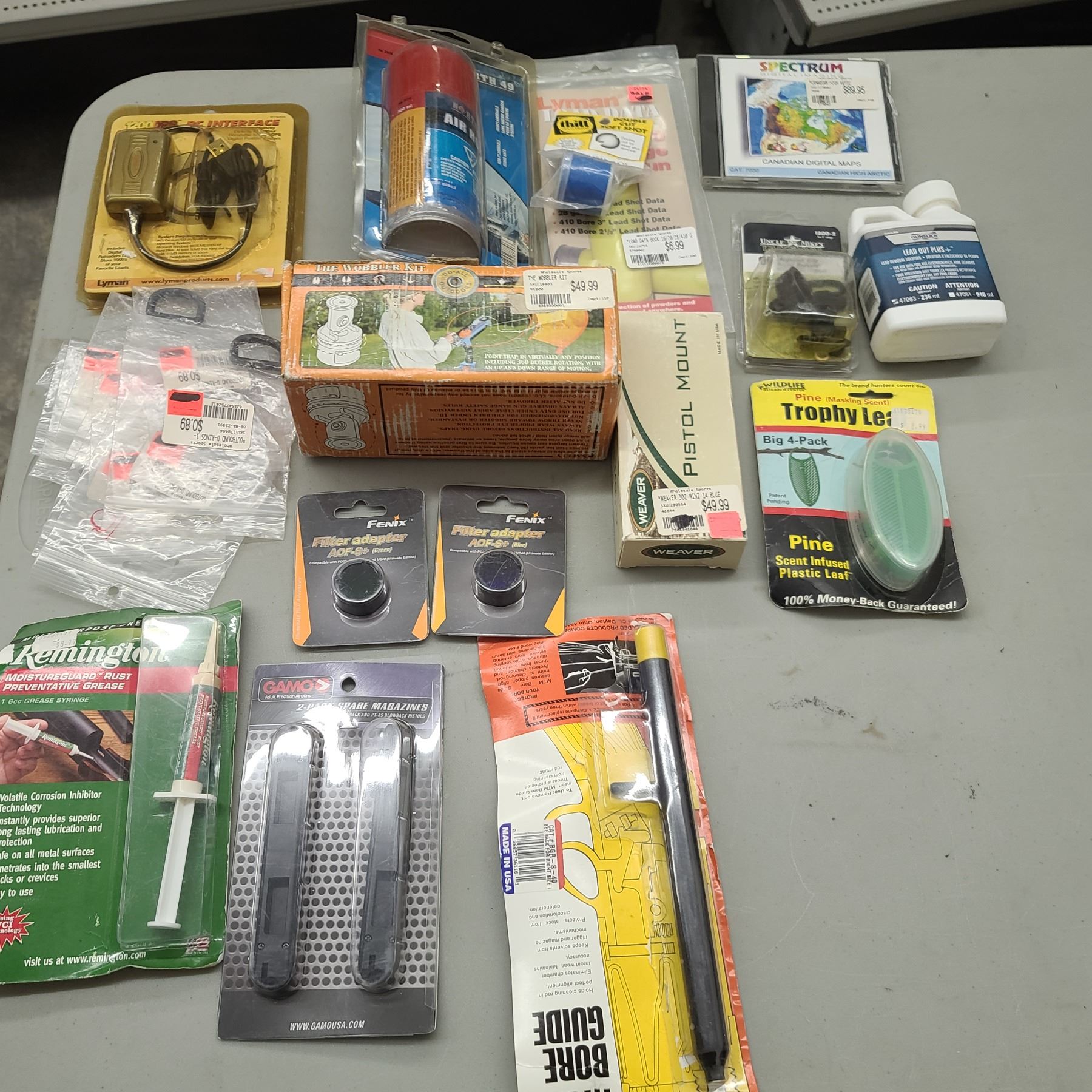 LARGE MSC. LOT INCLUDING WEAVER PISTOL MOUNT, MOISTURE GUARD, SPECTRUM DIGITAL IMAGING. RETAIL VALUE OF $300