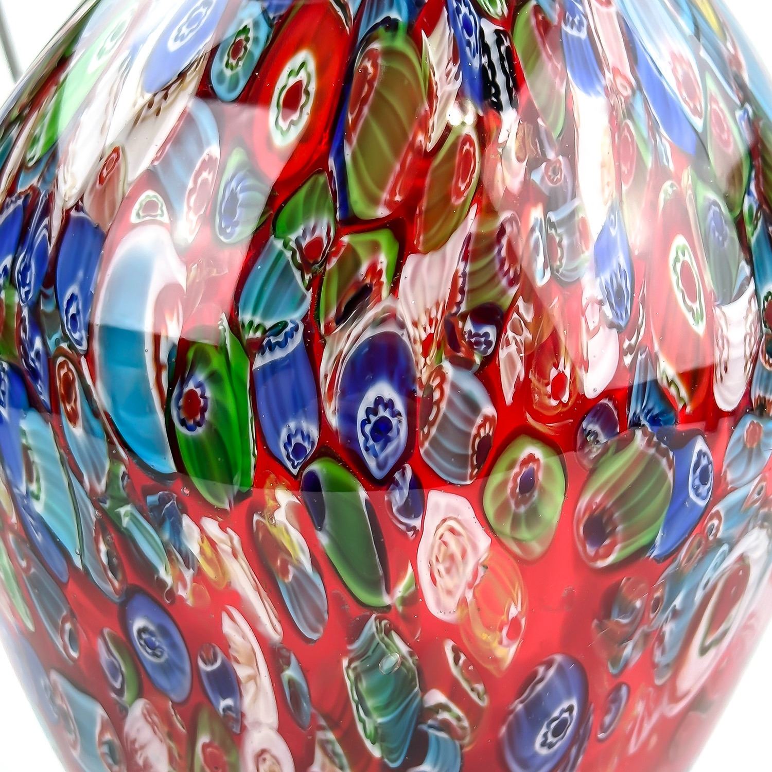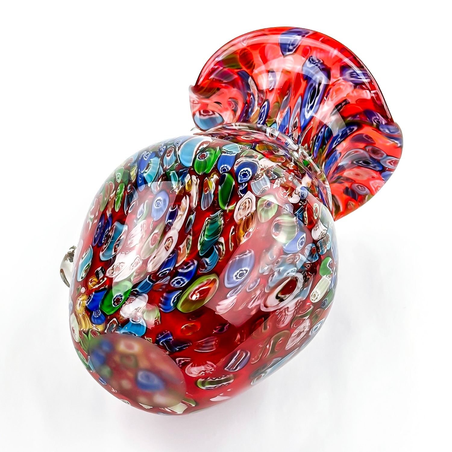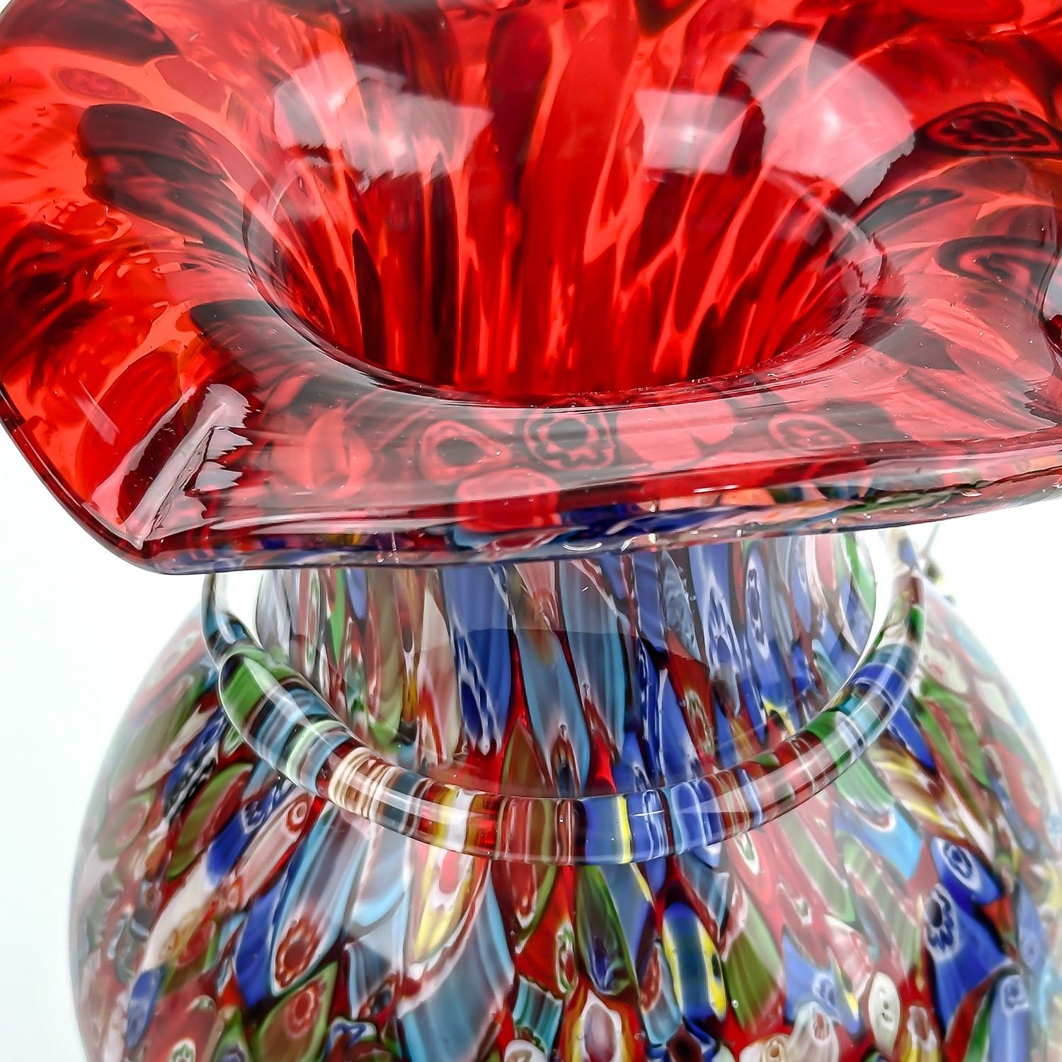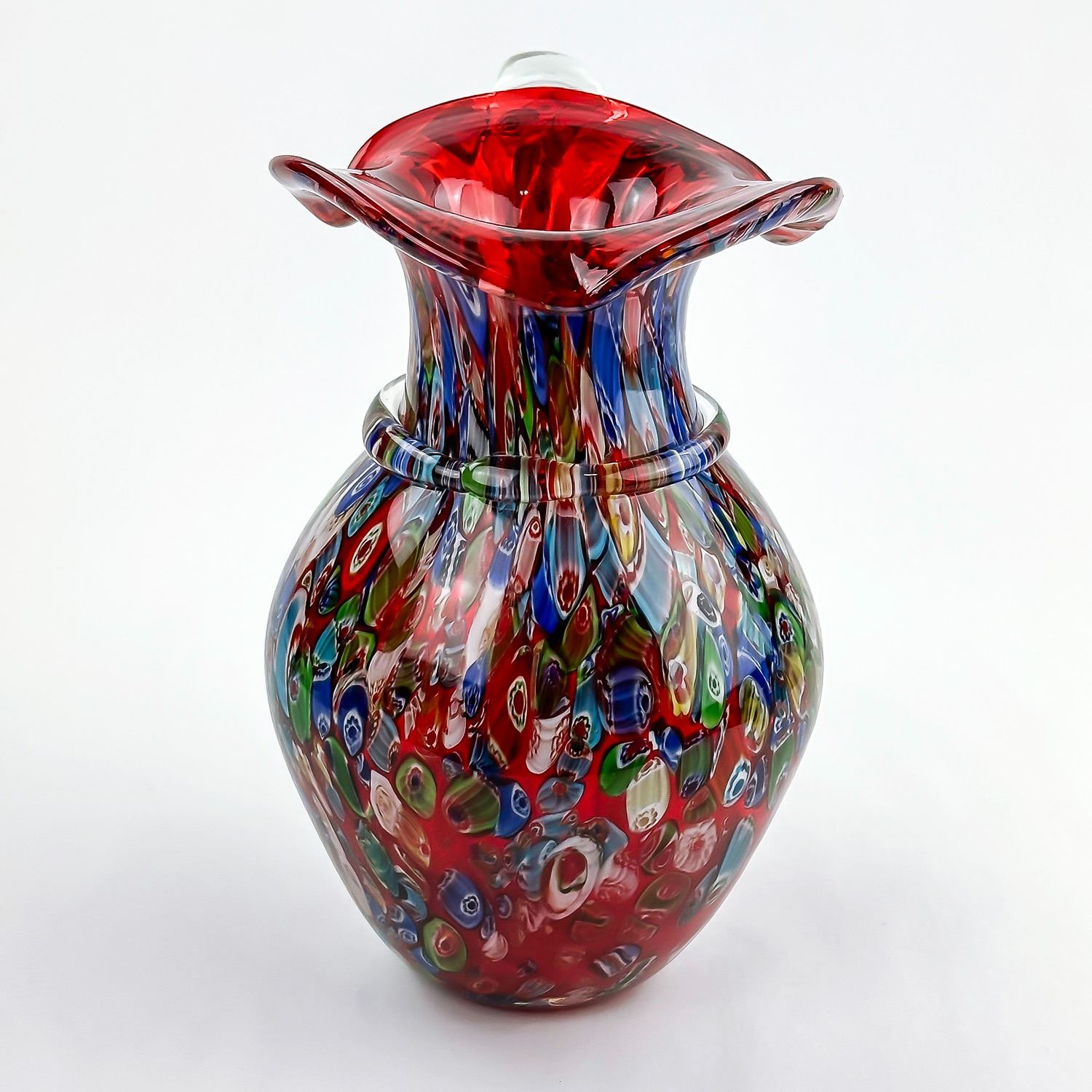 #8008 - LARGE 2.8 KG (6.2 POUNDS) MILLEFIORI HAND CRAFTED BLOWN ART GLASS PITCHER. KITCHEN KITCHENWARE BAR BARWARE DECOR BLOWN GLASS PITCHER SCULPTURE. MEASURES: 9.5”(24 CM) TALL BY 8.5” (21.5 CM) WIDE - SPOUT TO HANDLE. WIDEST MAIN BODY DIAMETER IS APPROXIMATELY 6” (15 CM)
