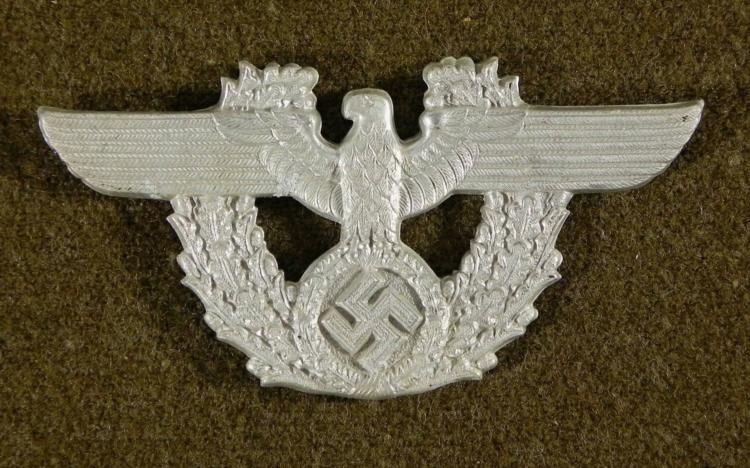LARGE NAZI POLICE HAT EAGLE-ORIG-4" WINGSPAN- * 3 PRONGS BENT ON UNDERSIDE, BUT PRESENT *