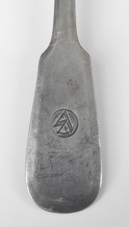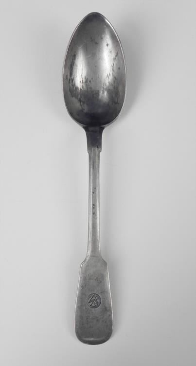 LARGE NAZI SA/STORMTROOPER DINING HALL SOUP SPOON-MAKER MARKED 9" LARGE SA--NAZI STORMTROOPER'S DINING HALL SPOON-SA SYMBOL ON HANDLE-REVERSE IS MARKED "BM-GOWE-VERSILBERT"