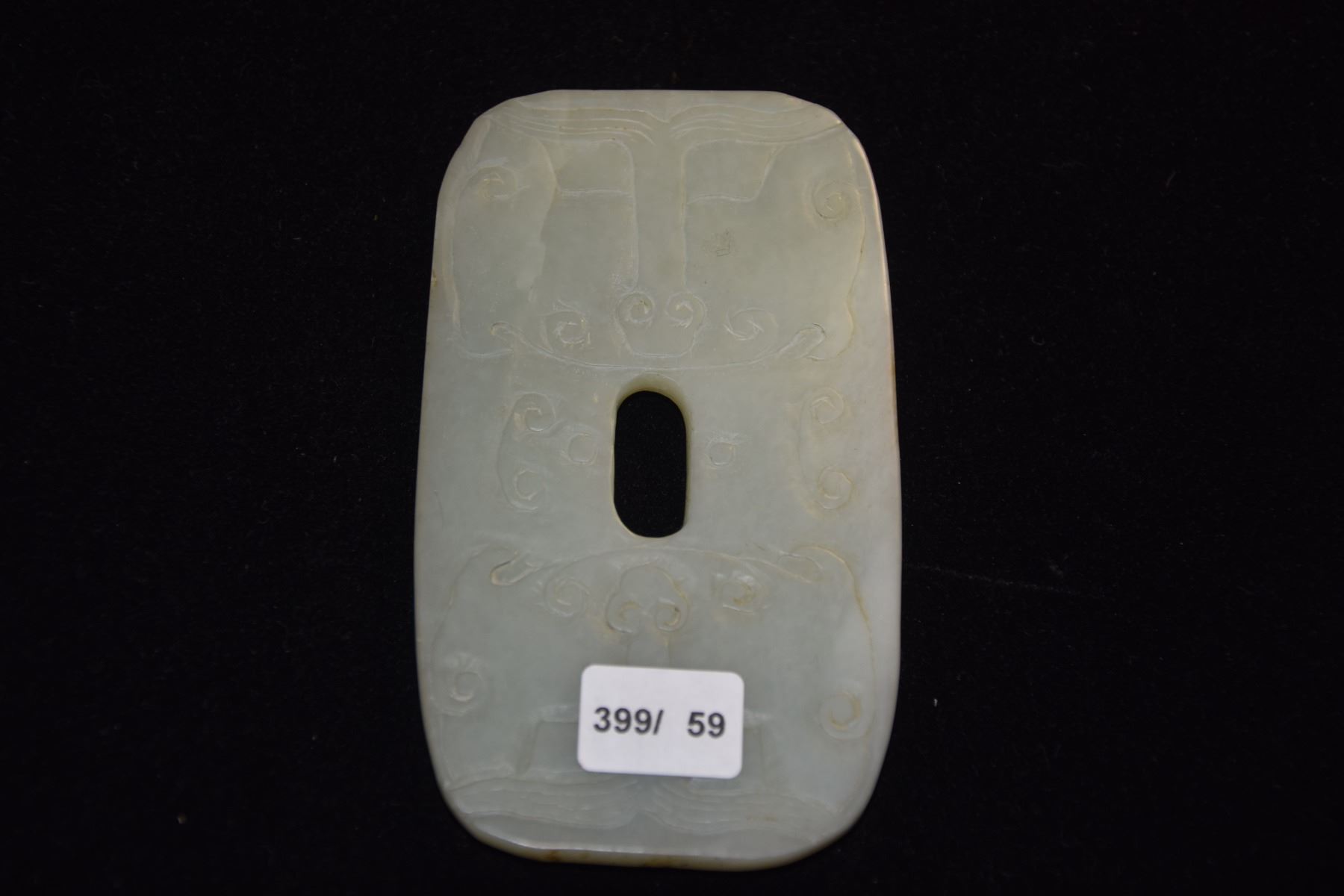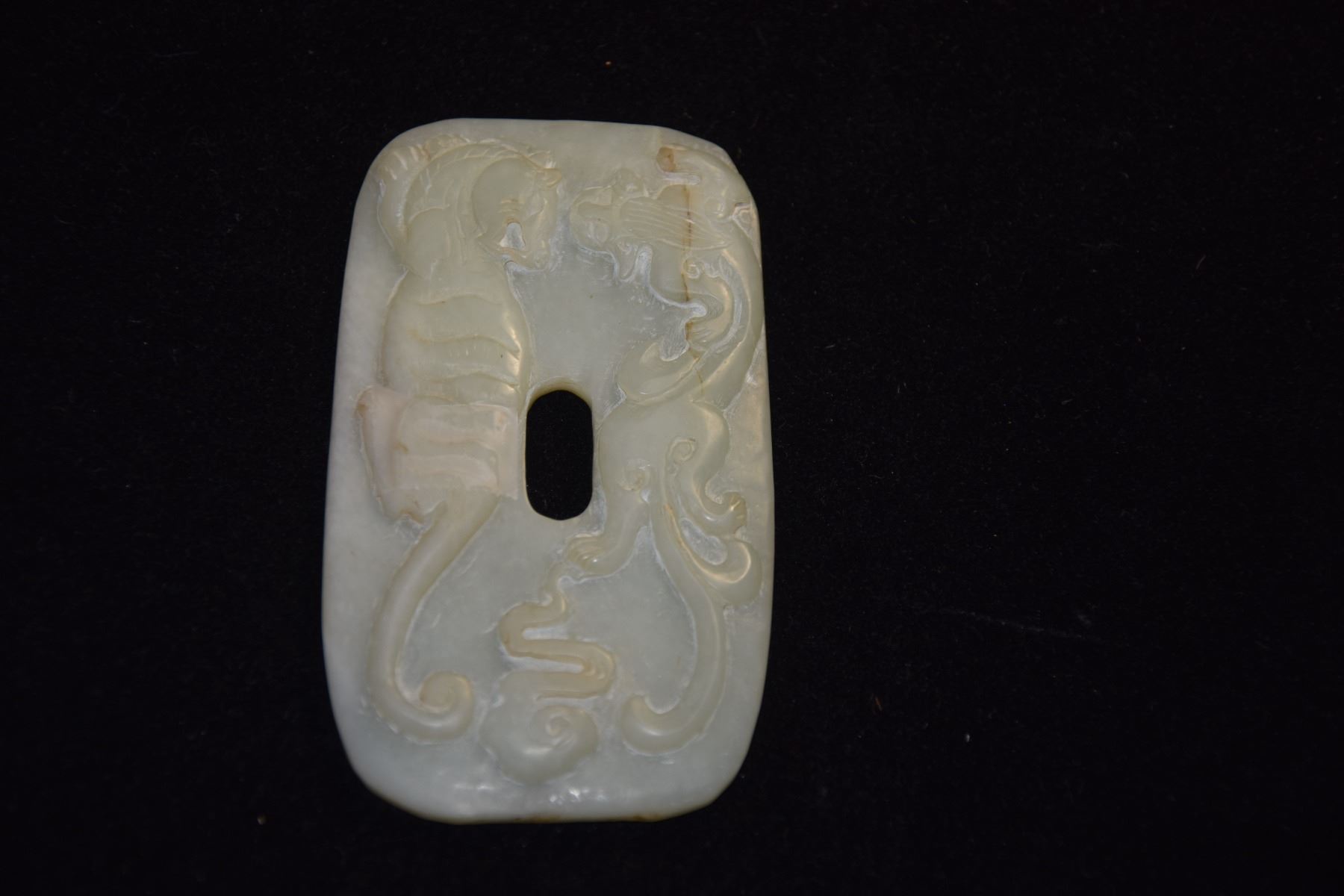 LARGE NEPHRITE RECTANGULAR DOUBLE DRAGON PI (3 7/8" X 2 1/4")