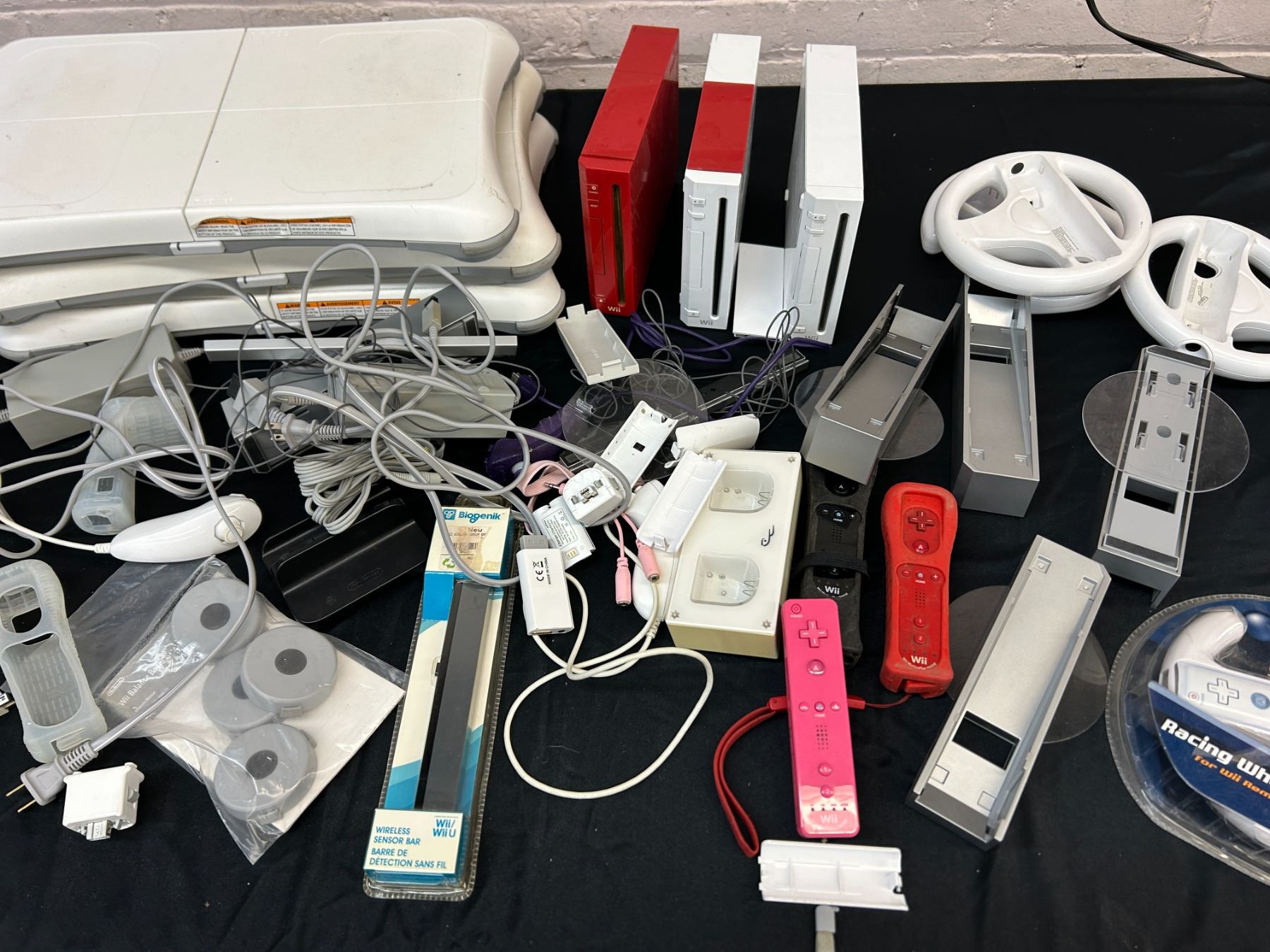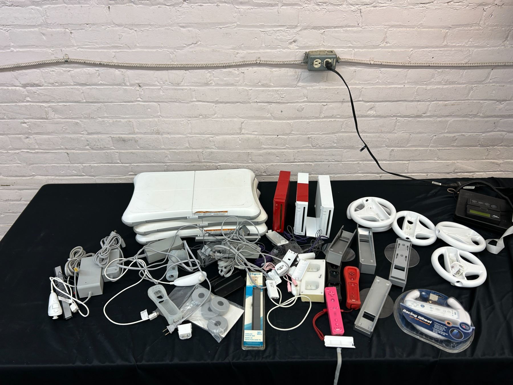 LARGE Nintendo Wii Accssories Lot Consoles, Wii Fit Boards, Wheels, Accessories, Cables, etc