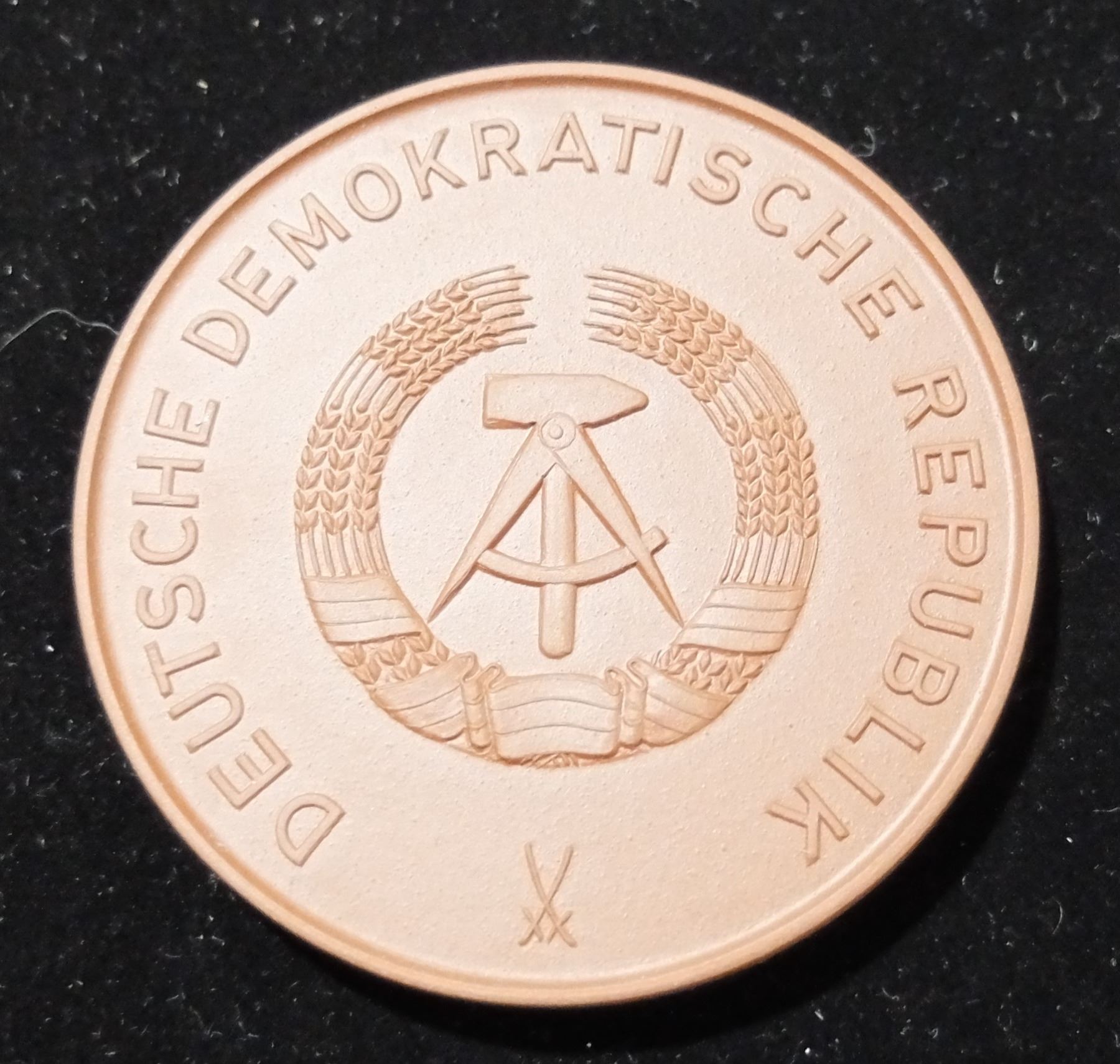 LARGE OLD PORCELAIN GERMAN DEMOCRATIC MEDAL