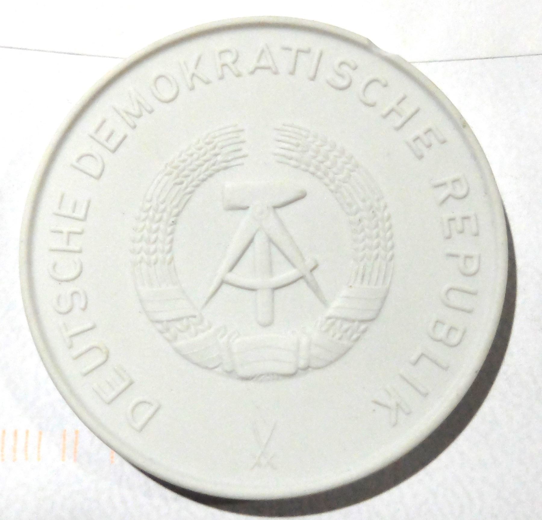 LARGE OLD PORCELAIN GERMAN DEMOCRATIC MEDAL