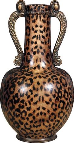 "LARGE OPEN LEOPARD PRINT VASE" - HAND FINISHED - ANIMALIA STYLED - DIMENTIONS - 12DIA X 23H - WEIGHT - 15 LB