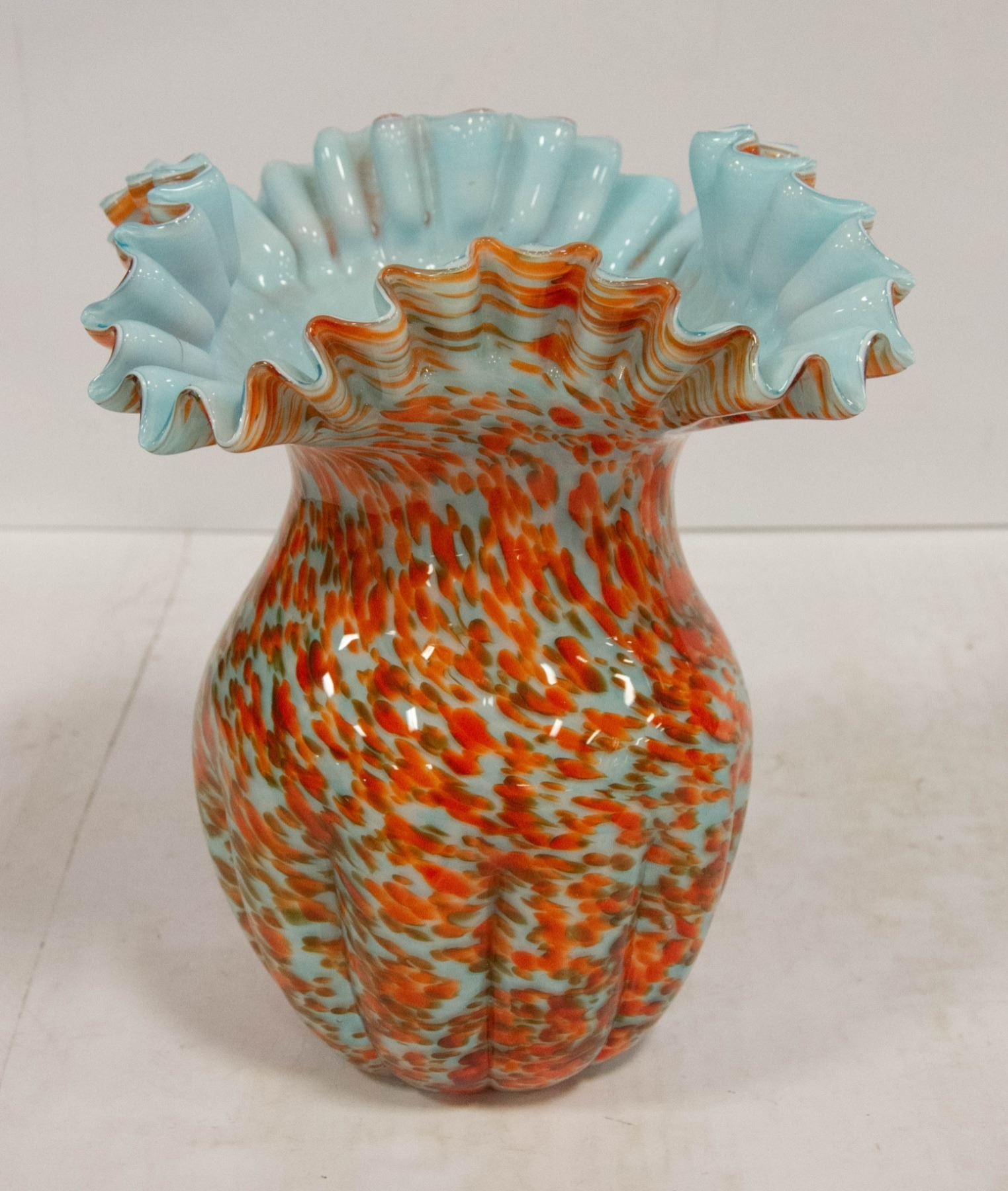 LARGE ORANGE AND BLUE MURANO WAVY-TOP VASE