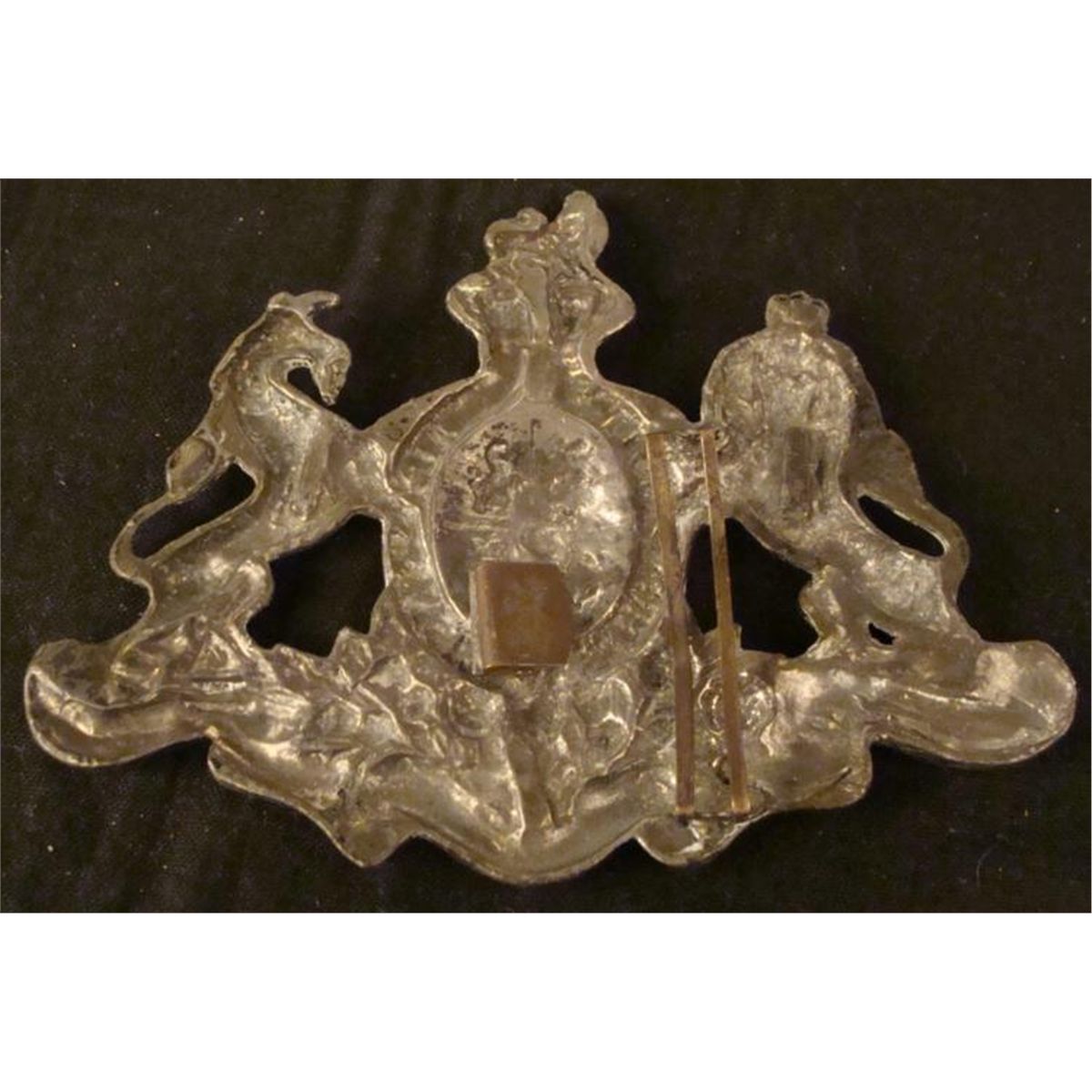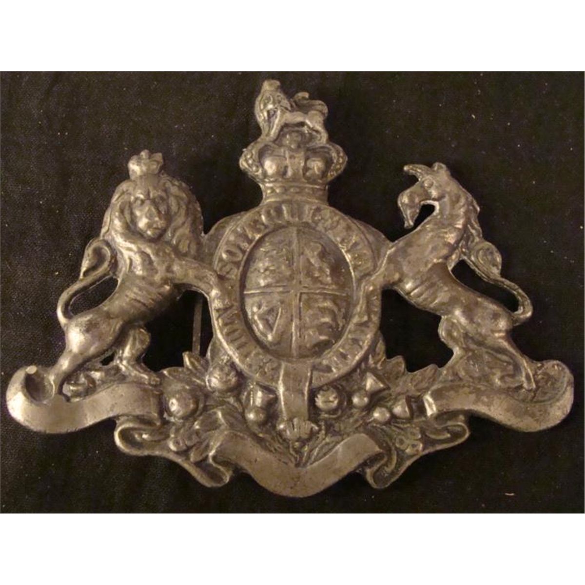LARGE ORIGINAL WWII ERA BRITISH BELT/MILITARY EQUIPMENT STRAP CAST METAL REGIMENTAL INSIGNIA-3 3/4 X 4 3/4" * VERY UNIQUE WWII PIECE-HEAVY CAST METAL-HAS STRAP KEEPERS AND CLASP ON THE REVERSE. *