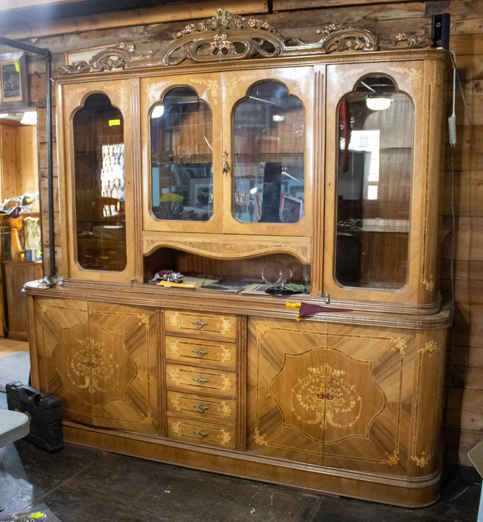 LARGE ORNATE 1800S 2 PIECE HUTCH WITH LIGHTS