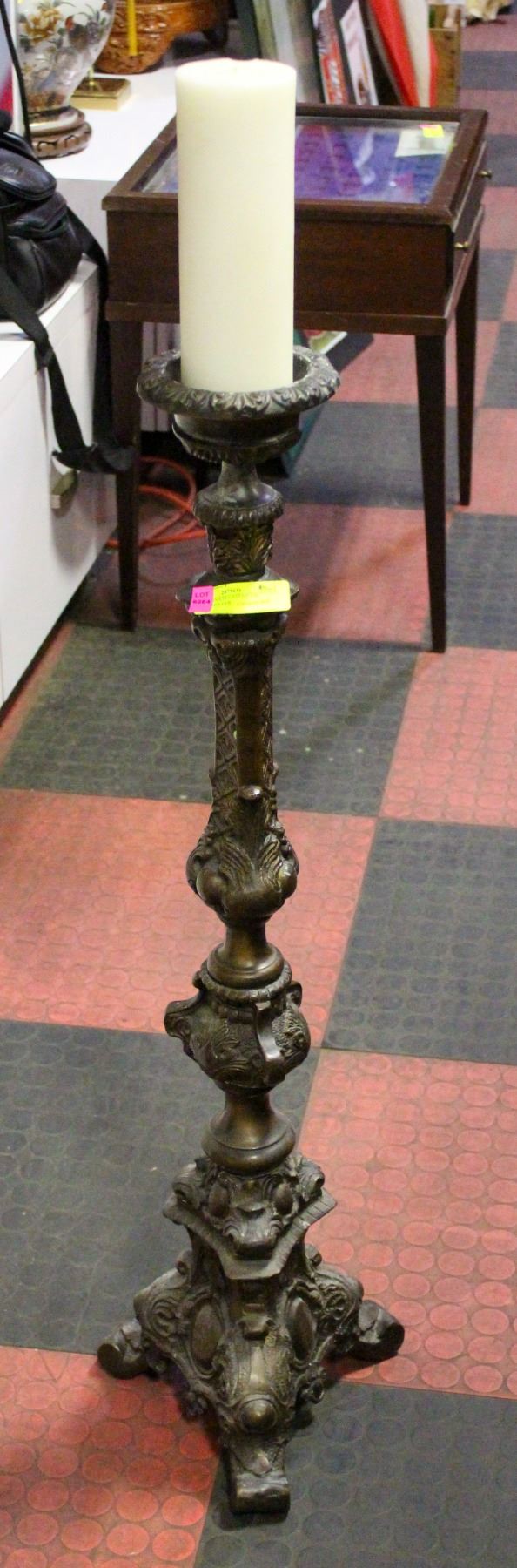 LARGE ORNATE CAST METAL CANDLE HOLDER
