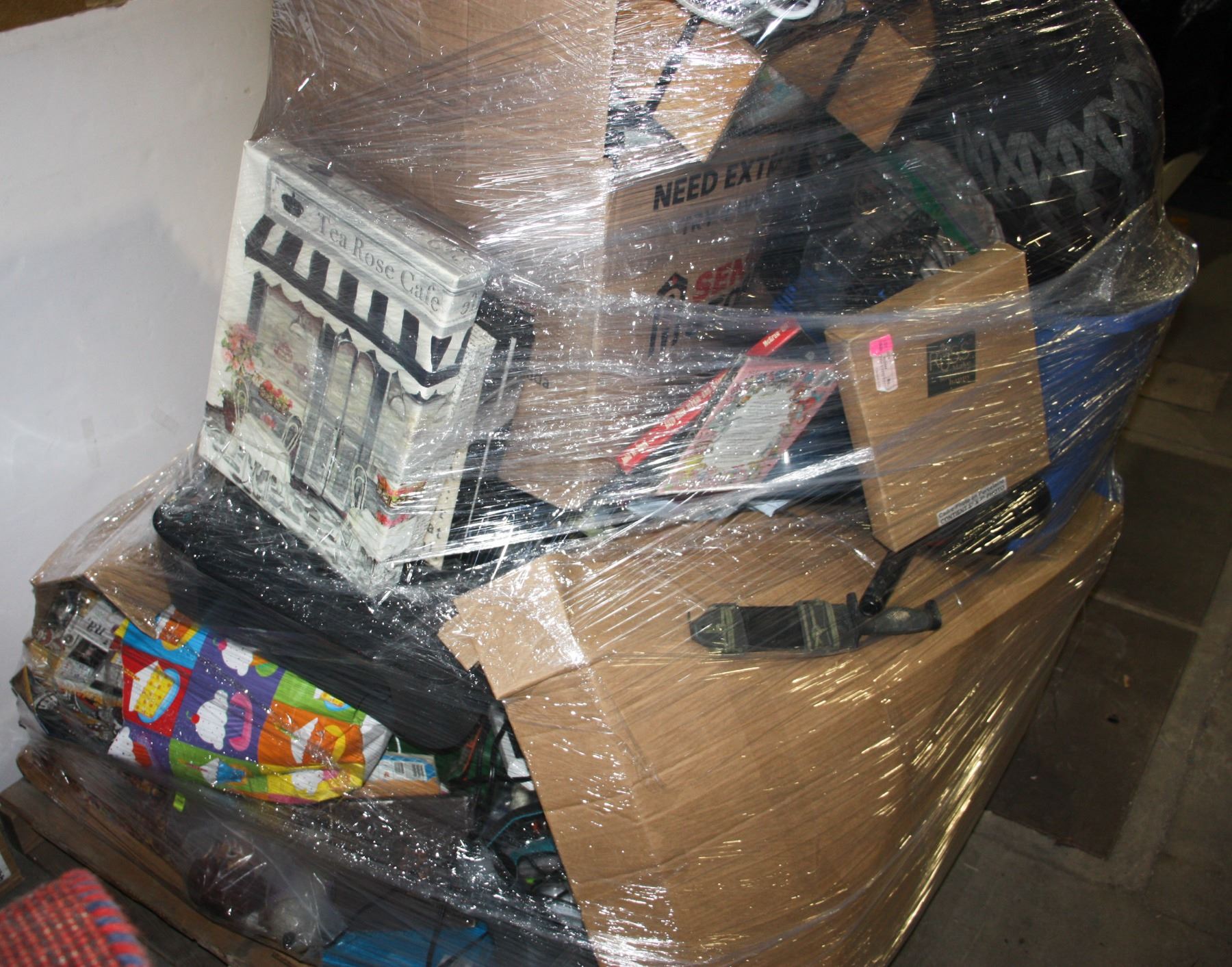 TANK MOUNT HEATER, SOME KIDS TOYS (AT LEAST ONE LEGO PARTIAL SET), HOME DECOR, DISHES, AND OTHER MISCELLANEOUS ITEMS. NOT FOR BREAKING DOWN AND RECONSIGNMENT. MUST BE REMOVED BY APRIL 18 OR STORAGE FEES WILL APPLY. ENTIRE PALLET MUST BE TAKEN