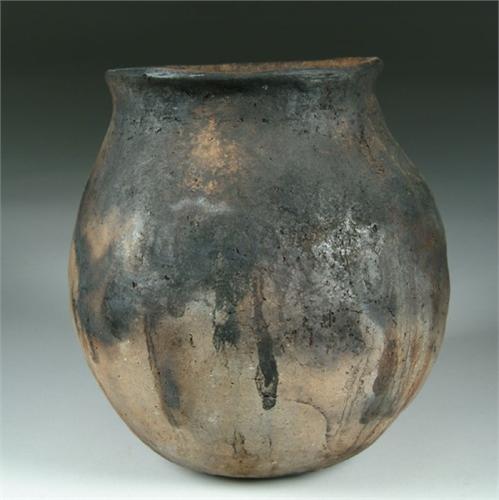 LARGE PLAIN MISSISSIPPIAN TYPE POT. Mississippian period, Circa 1200-1500AD style. SIZE: 8in. x 9-1/2in. h. CONDITION: Very good. 9-25984-53 The Tennessee Collection of Prehistoric Indian Artifacts from the Allen Graves Estate. SPECIAL NOTE: We do not regularly sell Prehistoric Indian stone artifacts and therefore have very little experience and no expertise in this area. All of the following lots have come from the Collection of the Late Allen Graves of Tennessee. The collection was inherited some years back by his daughter, who now lives in Maine. This collection was consigned to us directly from her. We employed someone to generally identify styles and types, but as stated above, due to our lack of expertise in this field, we can not guarantee the age or origin of the following pieces. We are relying on you, the buyer, to determine to your satisfaction the origin and age of each item in the collection.