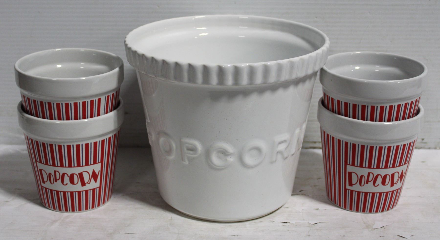LARGE POPCORN BOWL & 4 SMALL BOWLS (CERAMIC)