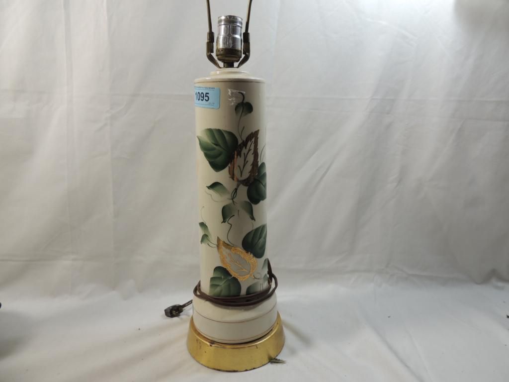 TALL PORCELAIN LEAF DETAIL PAINTED ON LAMP. AS SHOWN. SEE PHOTO FOR MORE DETAILS