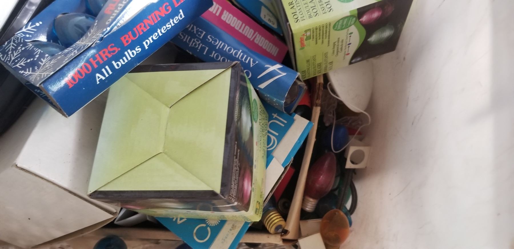 LARGE QTY OF CHRISTMAS LIGHTS AND ORNAMENTS AND BULBS