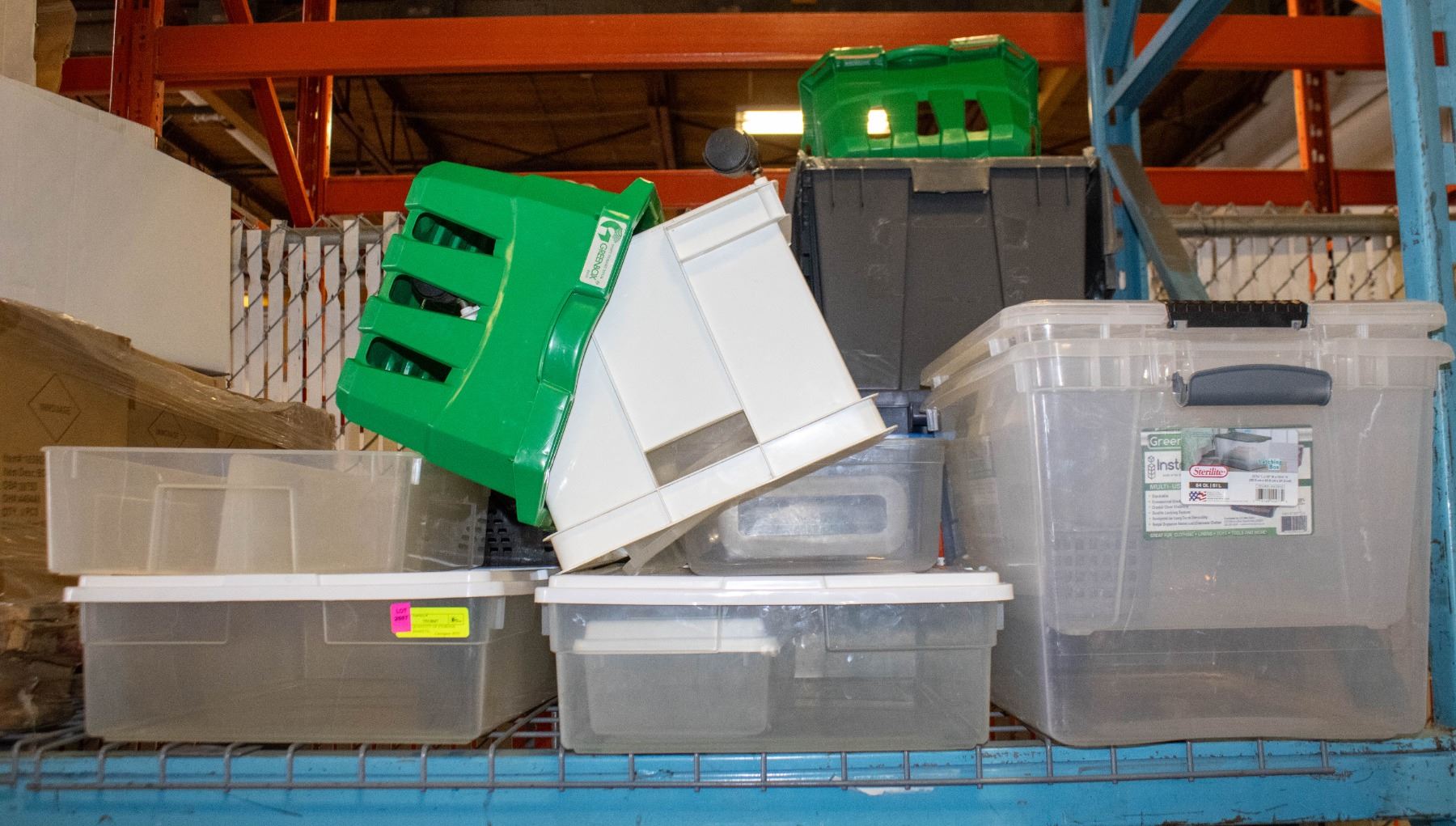 LARGE QUANTITY OF STORAGE TOTES, BASKETS,