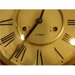 LARGE REPLICA 31 DAY BANJO CLOCK. Face is marked "31 Days". Good overall condition. 38.25" H, 15.75" W, 5.5" D