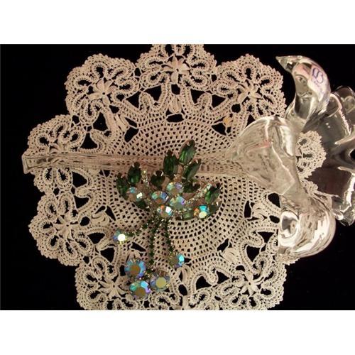 <tr><td>Title:LARGE RHINESTONE BROACH LIGHT TO DARK GREEN</td></tr>