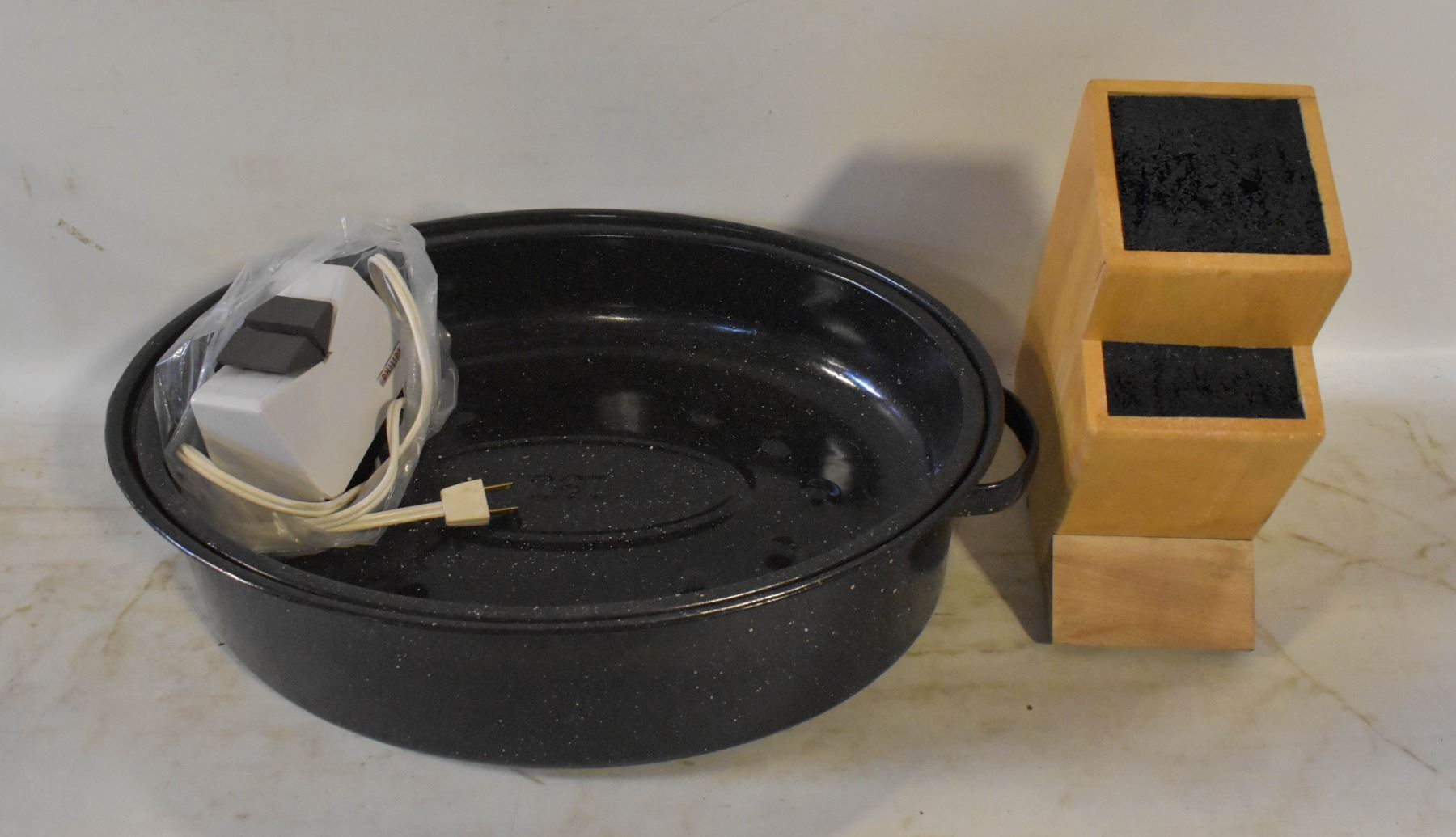LARGE ROASTER, KNIFE BLOCK, KNIFE SHARPENER