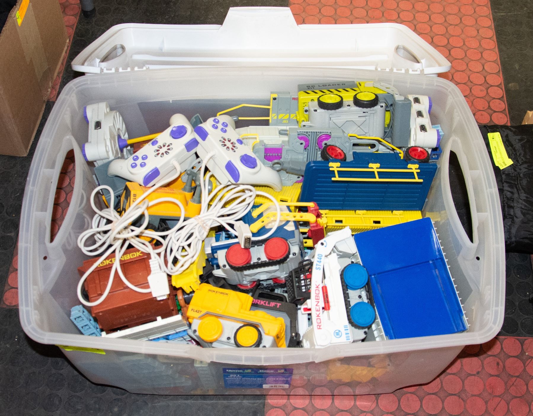 COLLECTION INCL. 6 MOTORIZED VEHICLES, 2 CONTROLLERS, 2 TOWER CONNECTIONS, HUNDREDS OF CONNECTORS AND LARGE PIECES IN CLEAR HINGED LID ROLLING STORAGE TOTE **ALL ITEMS MUST BE REMOVED BY 5PM SATURDAY, FEBRUARY 4TH 2023.** ALL REMAINING ITEMS WILL BE SUBJECT TO A $6.00 PER DAY STORAGE CHARGE. ANY ITEMS REMAINING AFTER MONDAY, FEBRUARY 20TH, 2023 WILL BE CONSIDERED FORFEITED. NO REFUNDS WILL BE ISSUED FOR FORFEITED ITEMS. TO SCHEDULE A PICK UP APPOINTMENT CLICK HERE