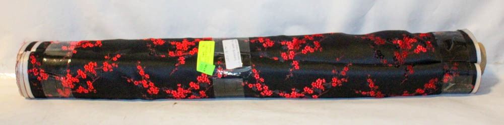 LARGE ROLL OF BLACK FABRIC SILK WITH RED