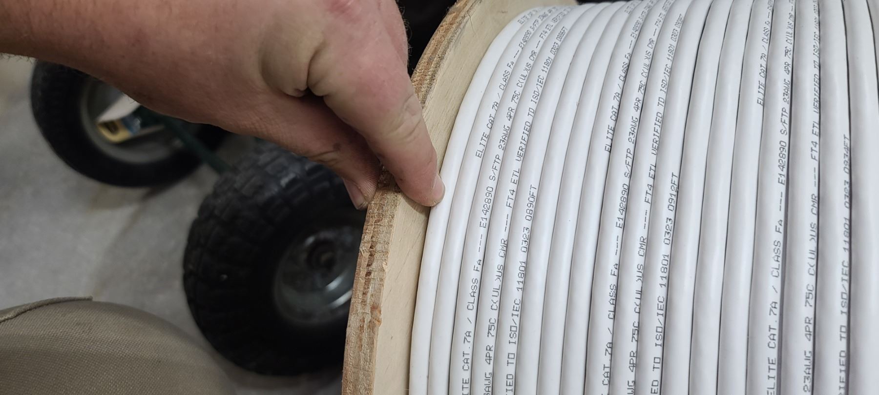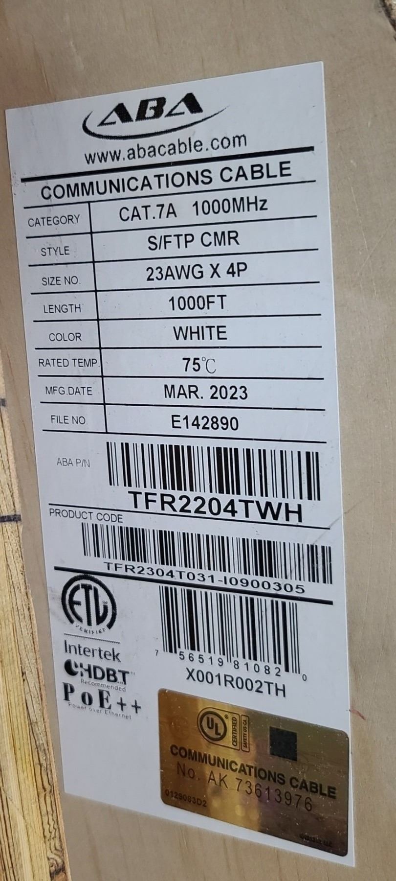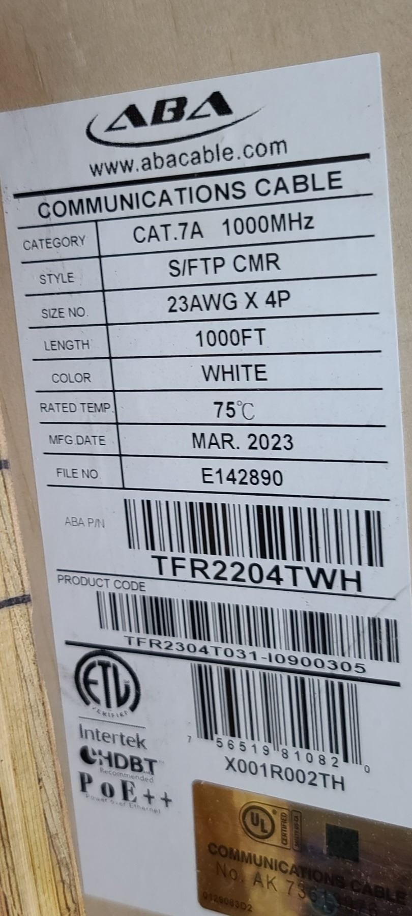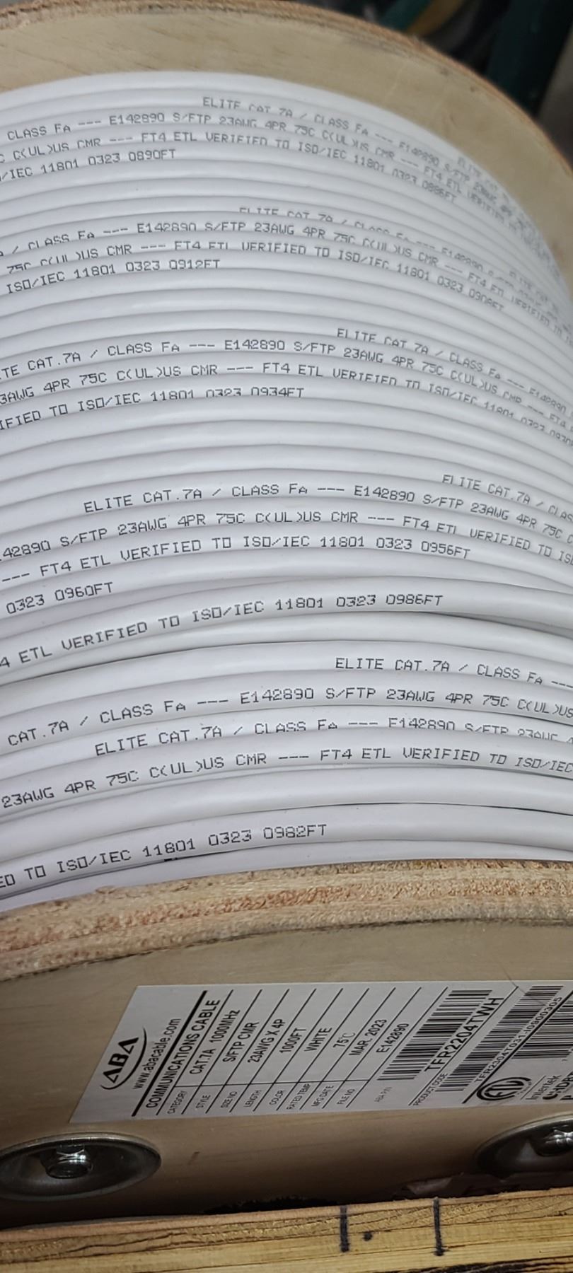 LARGE ROLL OF COMMUNICATION CABLE 1000FT 23AW5-X 4P MAR 23 RATED FOR CATEGORY 7 EHTERNET
