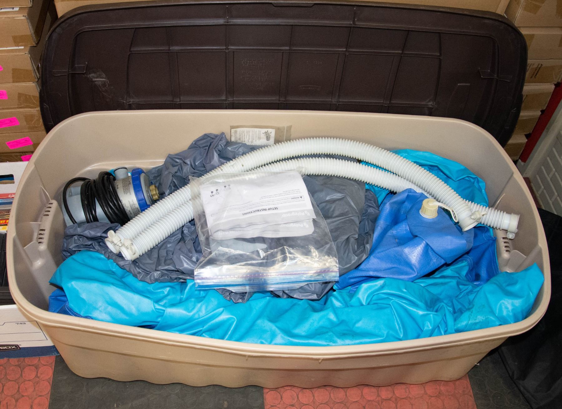 SUMMER ESCAPES INFLATABLE POOL, COMES WITH COVER, PUMP AND HOSES (24"-HIGH X 96"-LONG) **ALL ITEMS MUST BE REMOVED BY 5PM SATURDAY, JUNE 17TH 2023. ALL REMAINING ITEMS WILL BE SUBJECT TO A $6.00 PER DAY STORAGE CHARGE. ANY ITEMS REMAINING AFTER MONDAY, JULY 3RD, 2023 WILL BE CONSIDERED FORFEITED. NO REFUNDS WILL BE ISSUED FOR FORFEITED ITEMS. TO SCHEDULE A PICK UP APPOINTMENT CLICK HERE