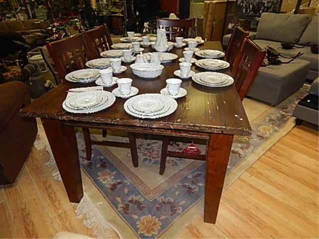 LARGE RUSTIC BARN WOOD STYLE DINING TABLE - WITH BUTTERFLY LEAF - as-is