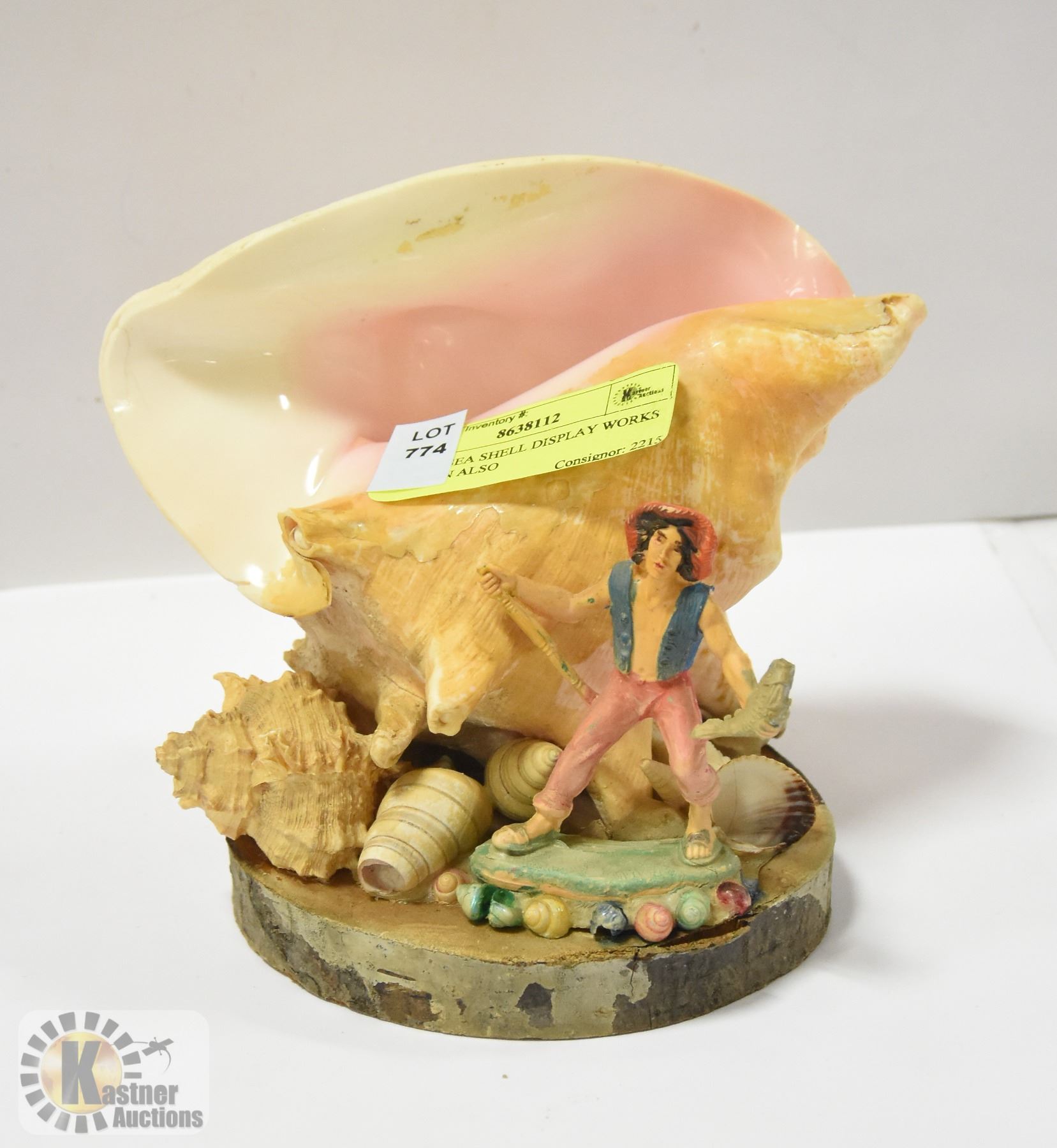 LARGE SEA SHELL DISPLAY WORKS AS HORN ALSO