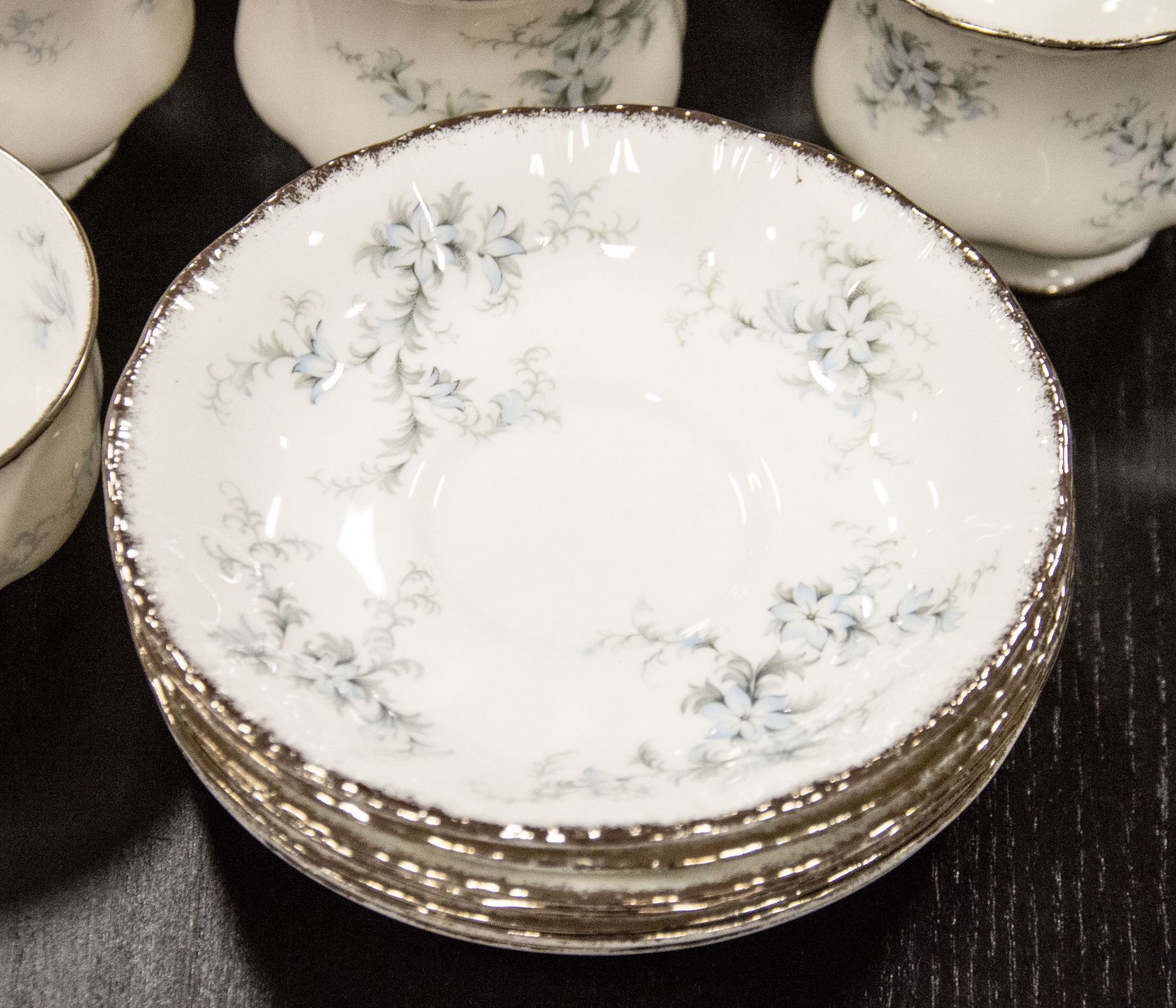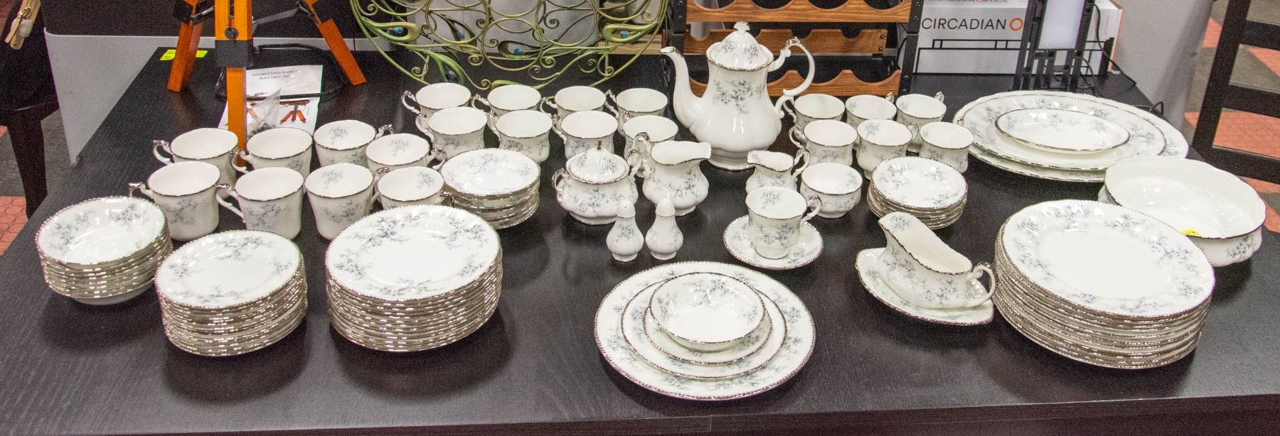 IN ENGLAND - 102 PIECE SET - CONSISTS OF: DINNER PLATES, SIDE PLATES/DESERT PLATES, BOWLS, GRAVY BOAT SET, LARGE BOWL, 3 OVAL PLATTERS (8 1/2", 13" & 15 1/2"), SALT & PEPPER SET, TEA/COFFEE POT WITH LID, TEA CUPS & SAUCERS, COFFEE CUPS, COFFEE SUG **ALL ITEMS MUST BE REMOVED BY 5PM SATURDAY, FEBRUARY 4TH 2023.** ALL REMAINING ITEMS WILL BE SUBJECT TO A $6.00 PER DAY STORAGE CHARGE. ANY ITEMS REMAINING AFTER MONDAY, FEBRUARY 20TH, 2023 WILL BE CONSIDERED FORFEITED. NO REFUNDS WILL BE ISSUED FOR FORFEITED ITEMS. TO SCHEDULE A PICK UP APPOINTMENT CLICK HERE