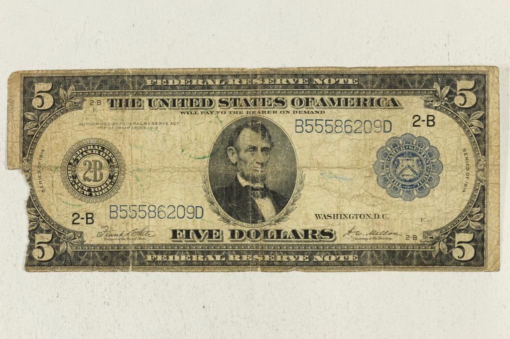 LARGE SIZE 1914 $5 FRN BLUE SEAL
