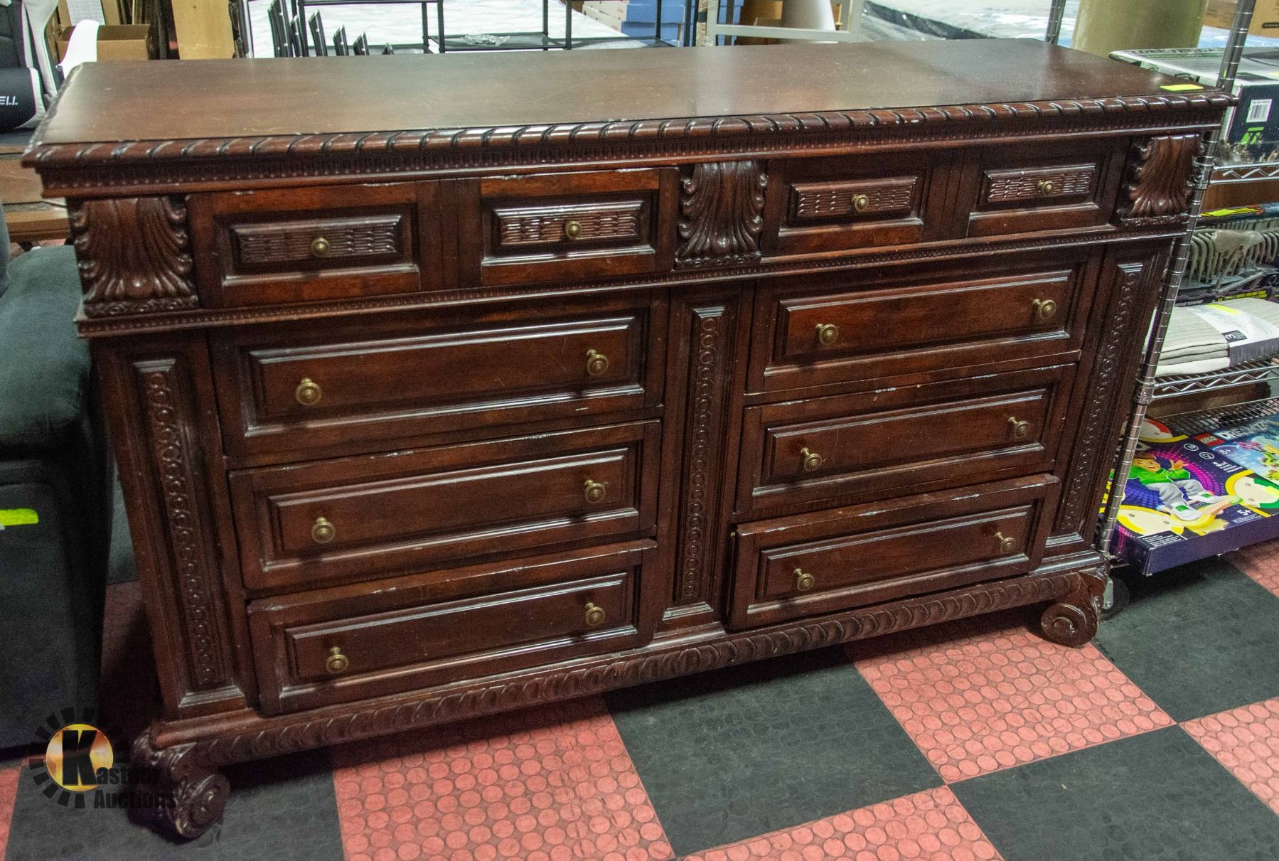 LARGE SOLID WOOD 8 DRAWER DRESSER 68" X 20" X 43"