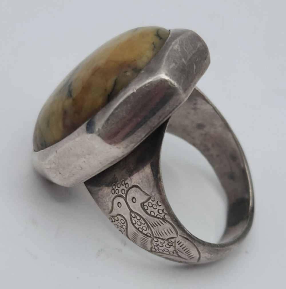 AWESOME NATURAL STONE with (2) BIRD DESIGN on SIDES - SIZE 9.5 (16 DWT)