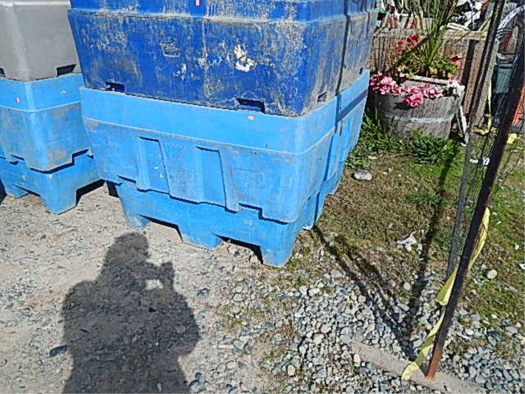 LARGE SQUARE BIN - PLASTIC - BLUE - WITH DRAIN HOLE AT BOTTOM - GREAT FOR RAISED GARDEN OR ???