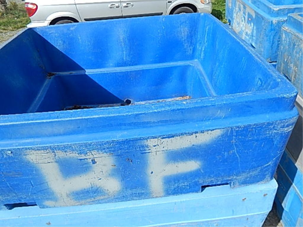 LARGE SQUARE BIN - PLASTIC - BLUE - WITH DRAIN HOLE AT BOTTOM - GREAT FOR RAISED GARDEN OR ???